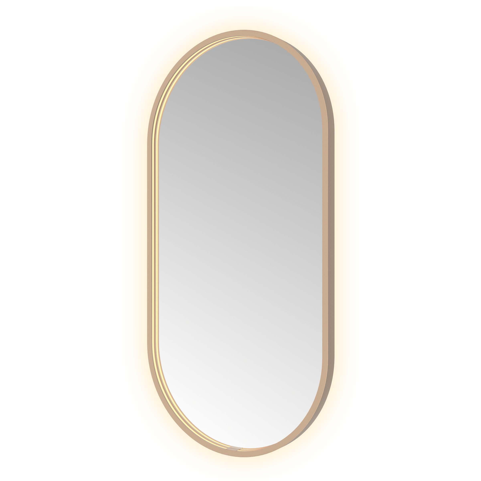 Hotbath &MORE Spiegel Oval direct en indirect LED spiegelverwarming dimbaar met afstandsbediening Geborsteld koper PVD