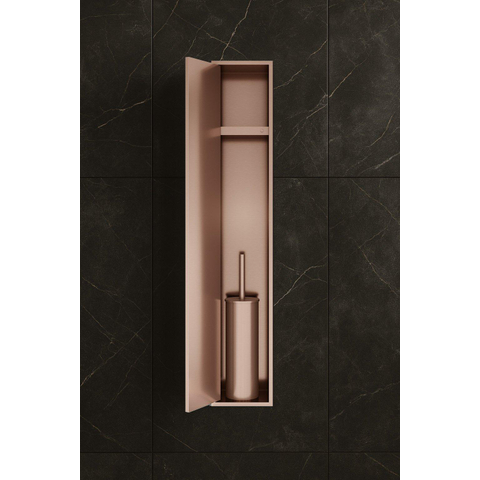 De warme, geborstelde koperlook geeft jouw badkamer een tijdloze en luxe uitstraling. Dit is niet zomaar een inbouwnis het is een designstatement dat subtiel opvalt en tegelijkertijd harmonieus samengaat met diverse badkamerstijlen. Of je nu kiest voor een moderne, industriële of klassieke inrichting, deze nis voegt een vleugje elegantie toe. Het geborsteld koper PVD zorgt voor een matte finish die niet alleen mooi is, maar ook vingerafdrukken en waterdruppels minder zichtbaar maakt. Zo blijft jouw badkamer er langer fris en verzorgd uitzien zonder extra schoonmaakwerk.