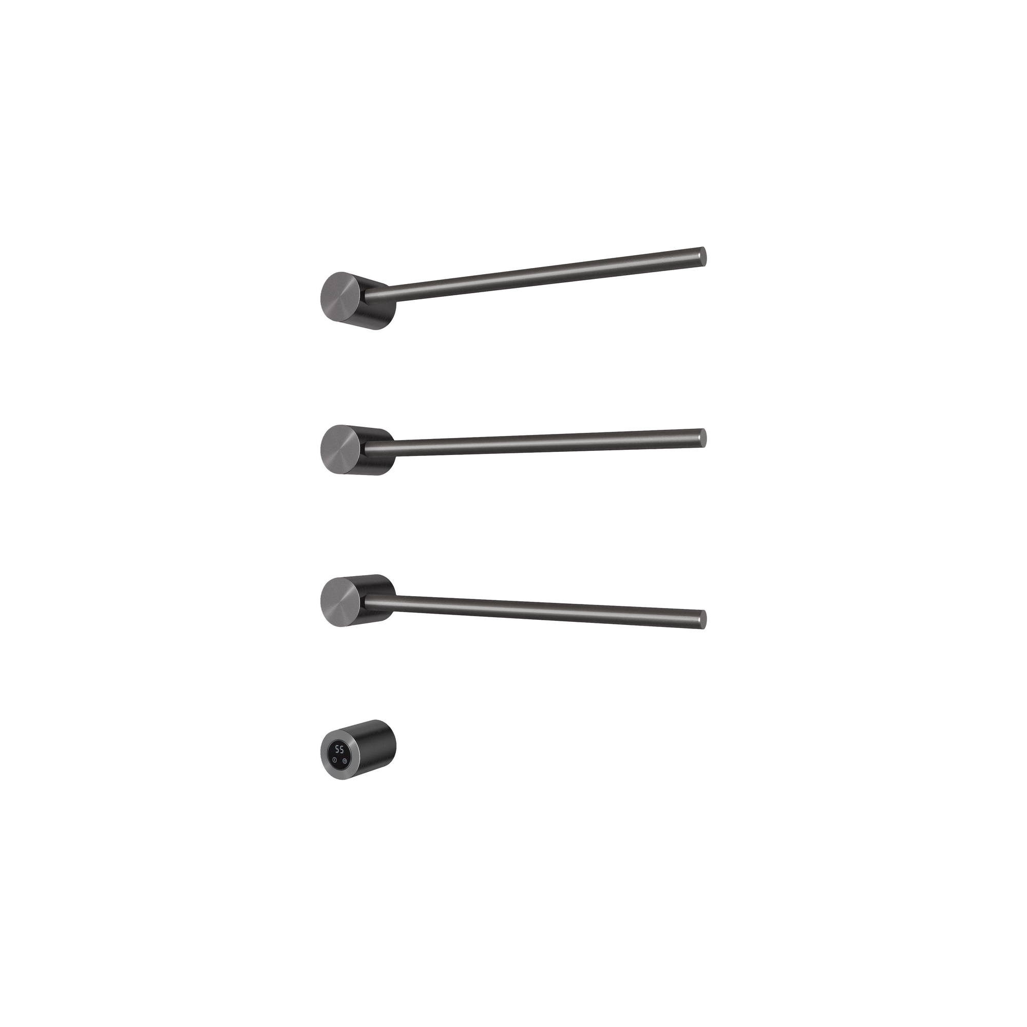 - Drie horizontale, ronde stangen: voldoende ophangruimte voor handdoeken met een strakke, rustige look.
