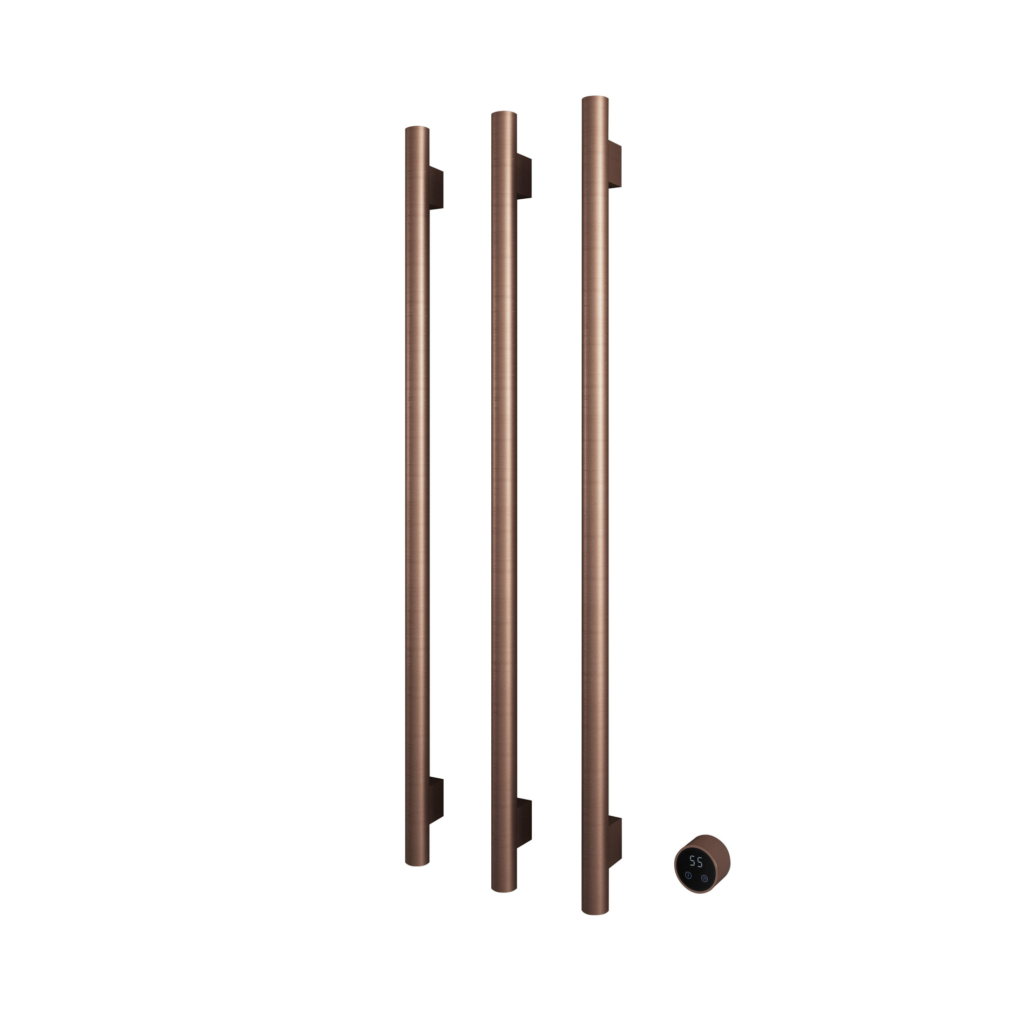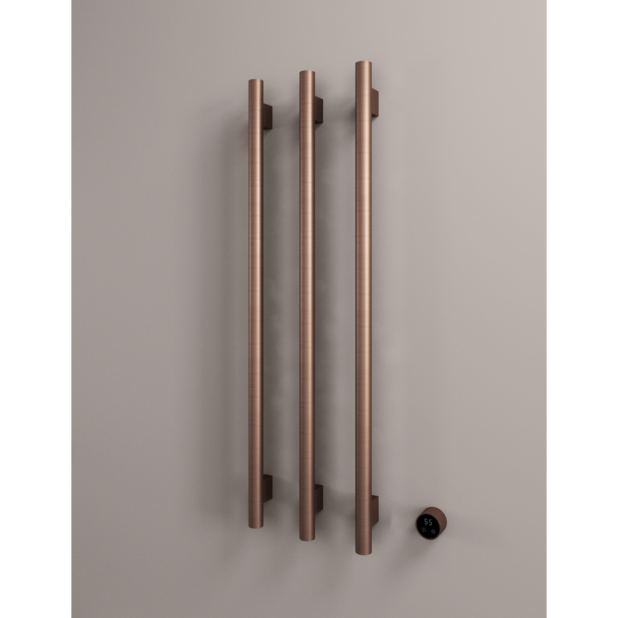 Hotbath &MORE Handdoekradiator - 57x115cm - rond - 3 stangen - verticaal - met schakelaar - geborsteld koper PVD