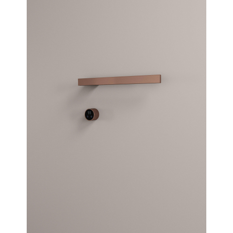 Deze compacte, horizontale handdoekradiator is ideaal als je op een slimme én stijlvolle manier extra comfort in je badkamer, toiletruimte of wellnesshoek wilt creëren. Dankzij het minimalistische ontwerp met één brede stang hang je gemakkelijk een handdoek of badlaken op, terwijl hij deze zacht voorverwarmt. Door het bescheiden formaat past hij perfect naast de wastafel, boven een bad of in een kleine badkamer waar elke centimeter telt. De koper geborstelde afwerking geeft direct een luxe uitstraling en combineert prachtig met zwarte accenten, natuurlijke materialen en moderne kranen in warme metallic tinten. Omdat dit model elektrisch is en voorzien van een schakelaar, heb je geen complexe installatie aan het cv-systeem nodig en geniet je snel van comfortabele, warme handdoeken, precies op de momenten dat jij dat wilt.