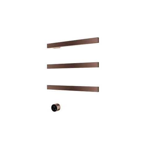 Zoek je een compacte, luxe manier om je handdoeken heerlijk warm en snel droog te krijgen, zonder een grote radiator aan de muur? Dan is dit ontwerp een slimme keuze. Met drie horizontale stangen, een strakke vierkante vorm en een diepe koperkleurige borstelstructuur past het perfect in moderne badkamers, hotel-chique interieurs en stijlvolle toiletruimtes. Door het elektrische element met schakelaar gebruik je het heel gericht: ideaal als je een extra warmtebron wilt bij de douche, in de inloopdouchezone of naast een badmeubel. Dankzij het bescheiden formaat is dit model ook geschikt voor kleinere badkamers of voor wie extra handdoekcomfort zoekt naast een bestaande verwarmingsoplossing.