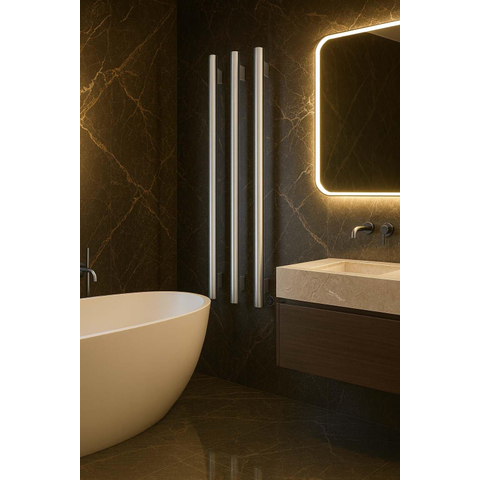 Zoek je een elegante manier om je handdoeken snel droog en aangenaam warm te krijgen, zonder een grote designradiator aan de muur? Dan is deze compacte, verticale handdoekverwarmer een slimme keuze. Dankzij de drie afzonderlijke stangen heb je genoeg ruimte voor meerdere handdoeken, terwijl het slanke ontwerp weinig plek inneemt. Ideaal voor een moderne badkamer, een luxe toiletruimte of een compacte city-badkamer waar elke centimeter telt. De chroomkleurige afwerking sluit moeiteloos aan bij glanzende kranen en accessoires, waardoor je geheel een rustige, hoogwaardige uitstraling krijgt. Omdat het toestel elektrisch is en geschikt voor vochtige ruimtes, is het ook perfect als extra warmtebron in een bestaande badkamer waar geen cv-leidingen meer te trekken zijn. Zo voeg je comfort toe, zonder ingrijpende verbouwing.