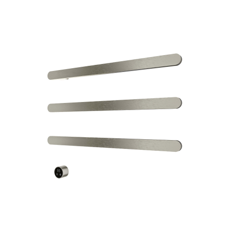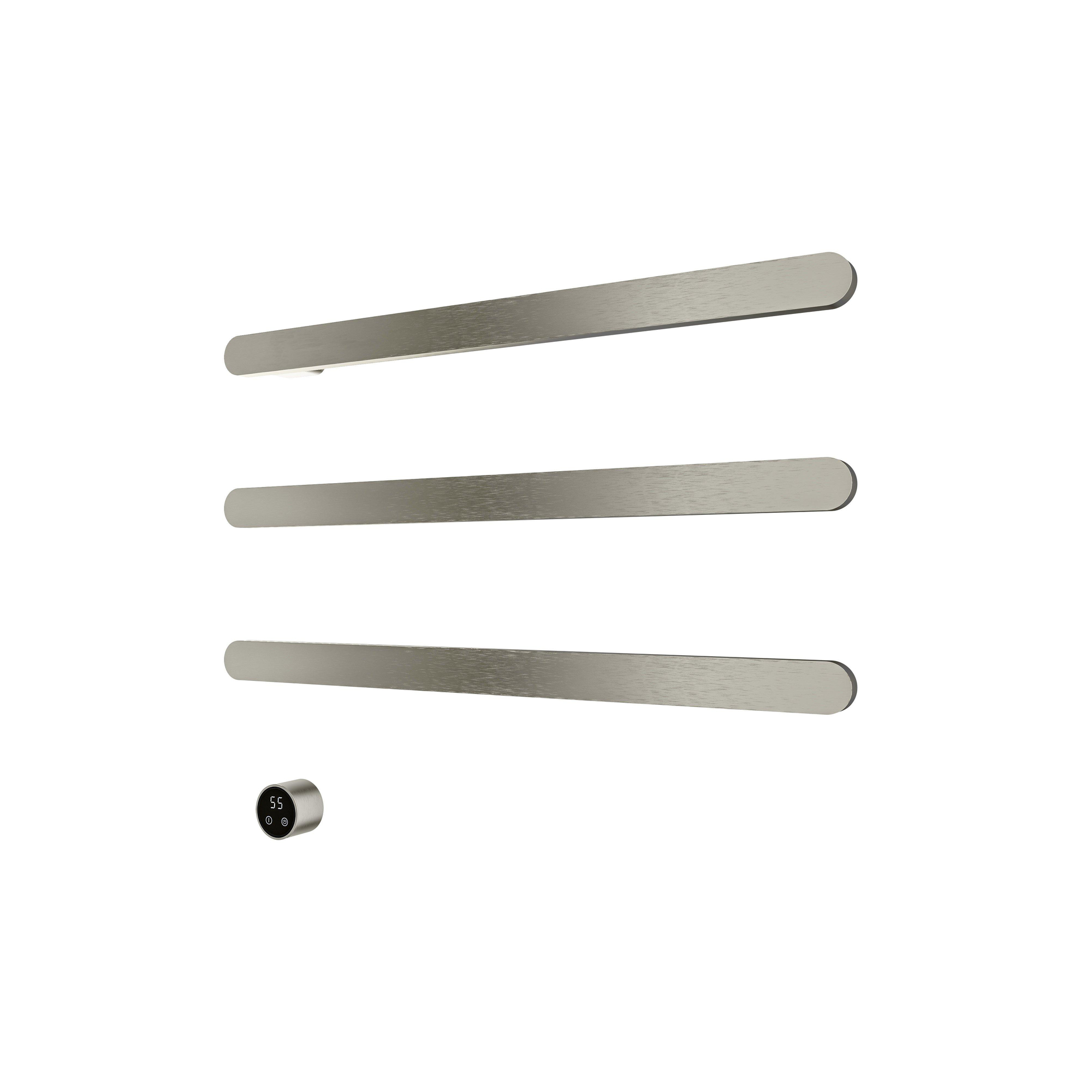 De geborsteld nikkel afwerking geeft deze handdoekradiator een luxe, bijna hotelachtige uitstraling. Het RVS-look oppervlak oogt zacht mat, waardoor vingerafdrukken en kleine vlekjes minder opvallen dan bij hoogglans chroom. De drie horizontale stangen met zachte, vierkante vorm en afgeronde hoeken zorgen voor een modern, rustig lijnenspel aan de wand. Dit maakt het een mooie match met strakke kranen, vierkante douchesets of een minimalistisch badkamermeubel. Bovendien is de kleur neutraal genoeg om te combineren met zowel witte als donkere tegels, betonlook, houtaccenten en zwarte details, zodat je badkamerinterieur één geheel blijft.