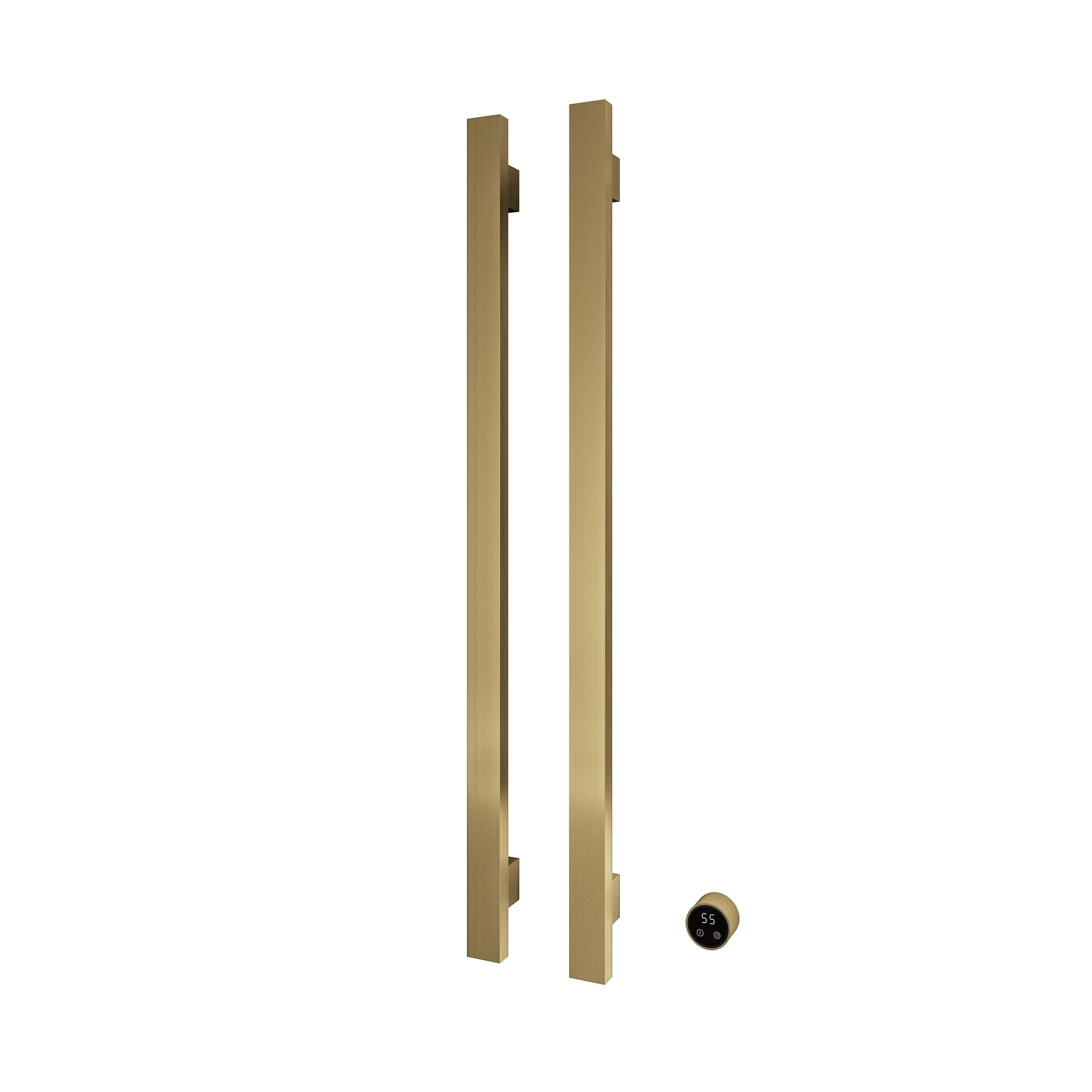 Hotbath &MORE Handdoekradiator - 38x115cm - vierkant - 2 stangen - verticaal - met schakelaar - geborsteld messing PVD