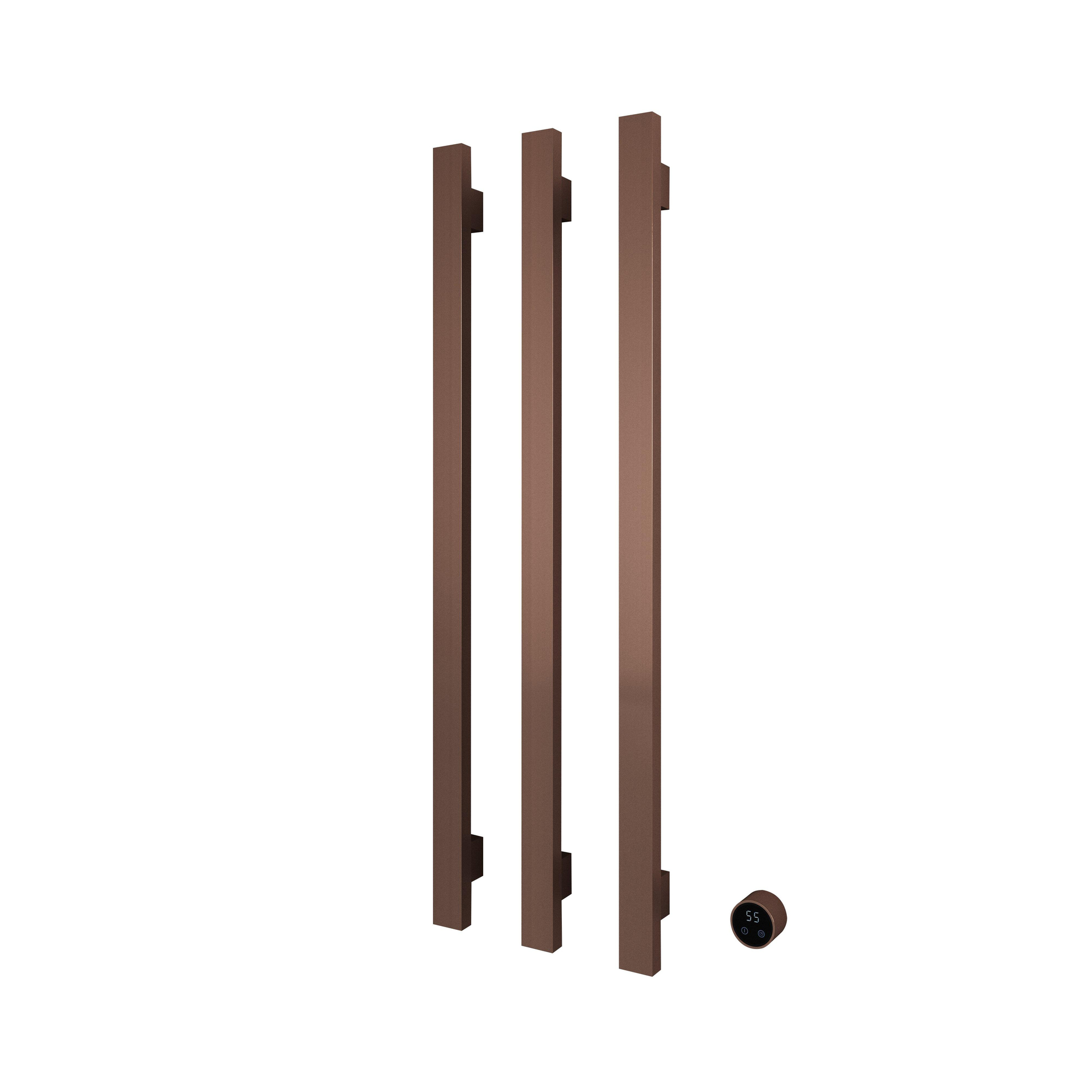 Hotbath &MORE Handdoekradiator - 57x115cm - vierkant - 3 stangen - verticaal - met schakelaar - geborsteld koper PVD