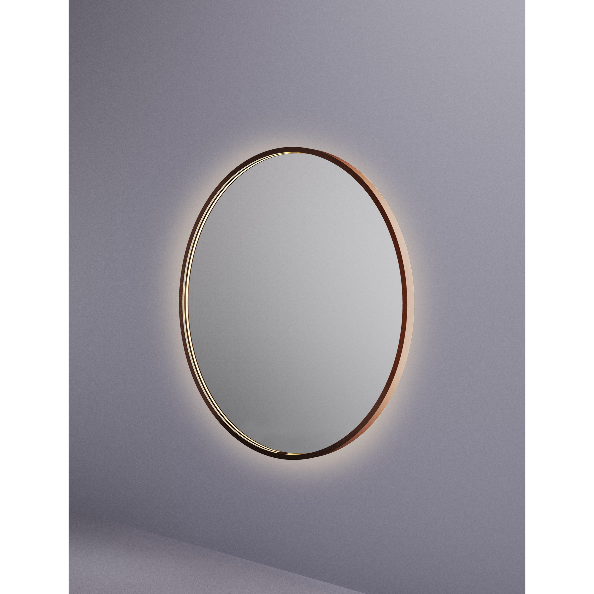 Hotbath &MORE Spiegel Round direct en indirect LED spiegelverwarming dimbaar met afstandsbediening Geborsteld koper PVD