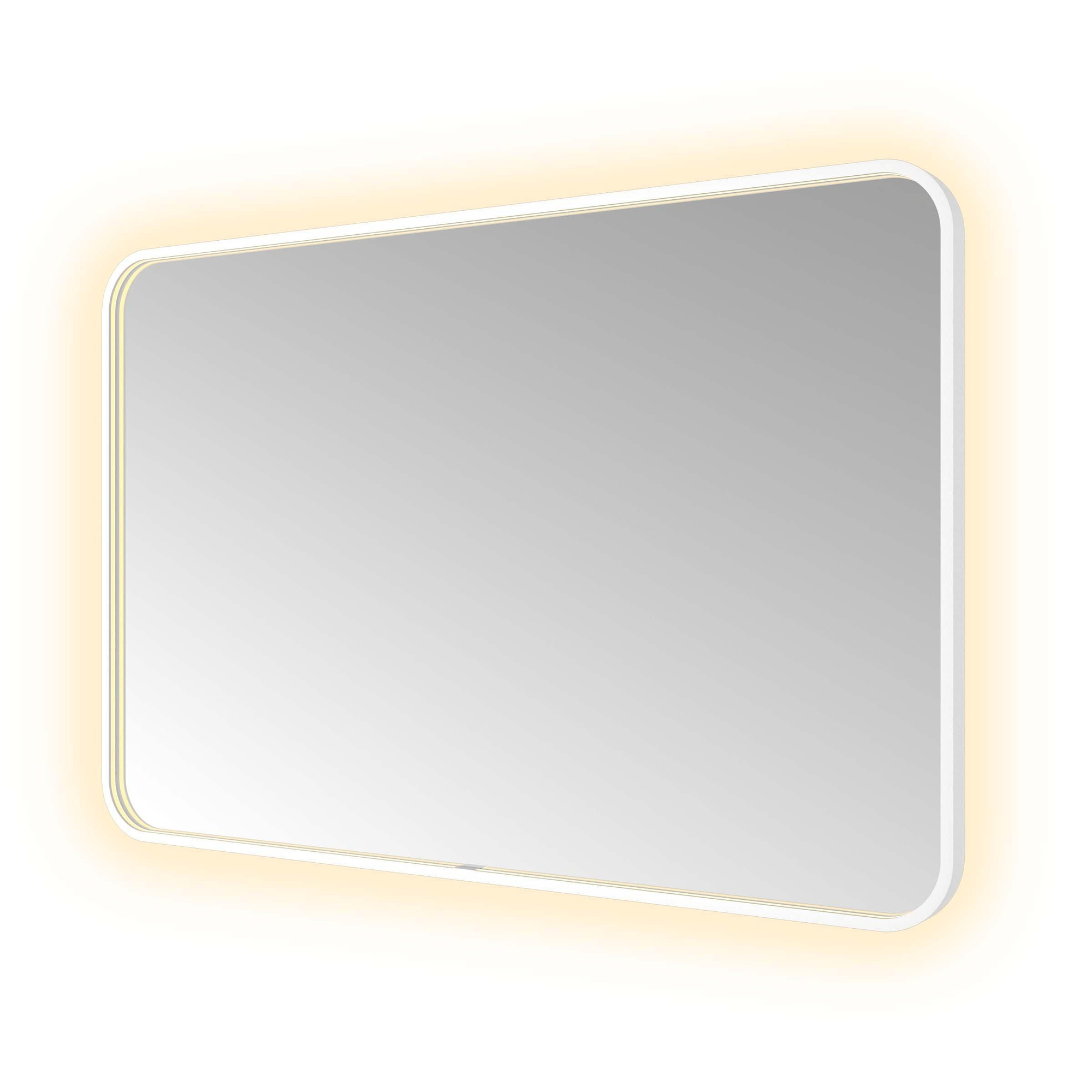 De mat witte afwerking en het aluminium frame geven deze spiegel een tijdloze, elegante uitstraling die naadloos aansluit bij diverse badkamerstijlen. Het strakke, rechthoekige ontwerp met zachte hoeken zorgt voor een moderne touch zonder te overheersen. Door de subtiele indirecte LED-verlichting ontstaat een sfeervolle gloed die jouw badkamer extra warmte en karakter geeft. Zo creëer je eenvoudig een luxe gevoel, terwijl de spiegel zelf een echte blikvanger blijft. Dankzij het doordachte design past deze spiegel perfect in zowel minimalistische als meer uitgesproken interieurs.