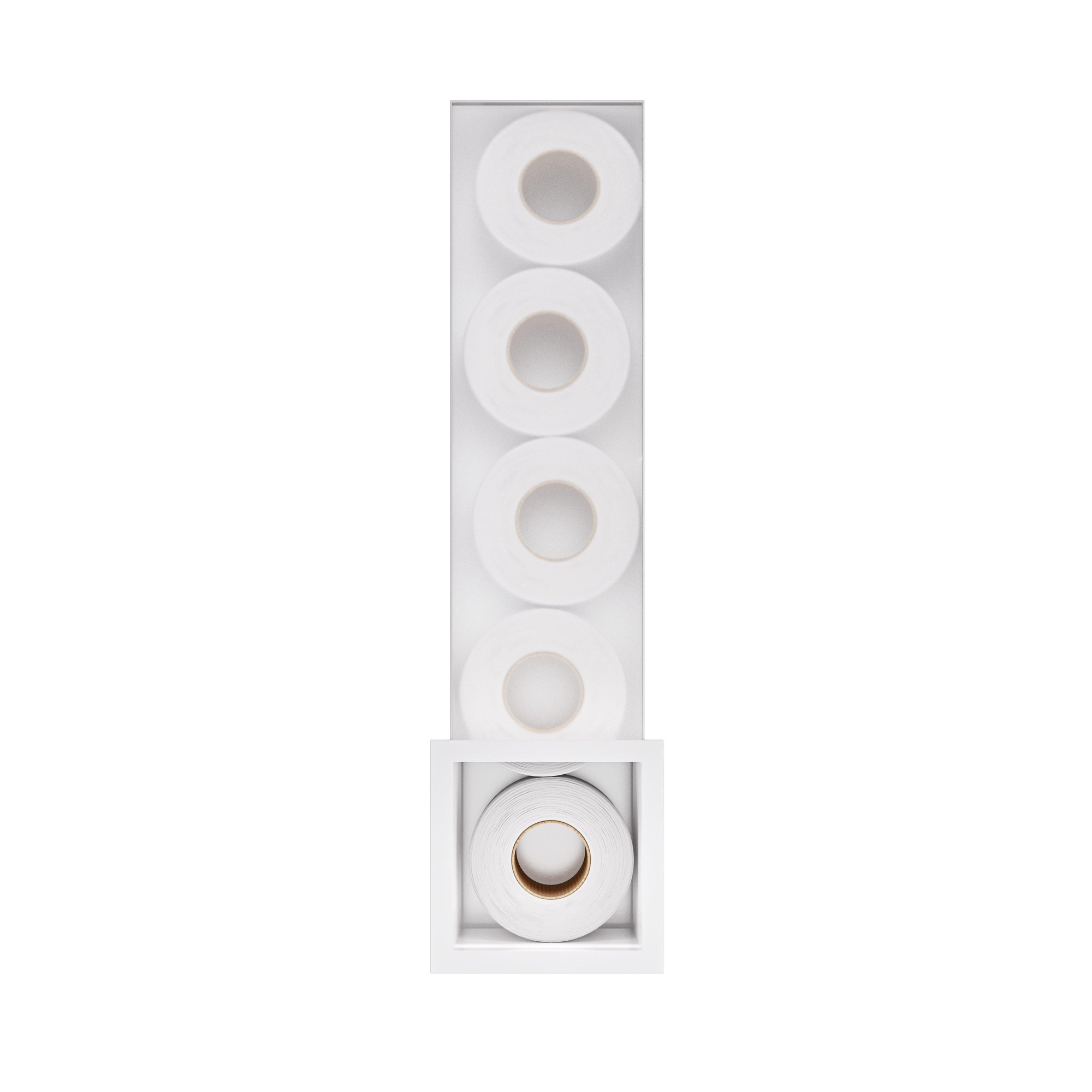 Stel je voor: een badkamer die niet alleen stijlvol oogt, maar ook tot in de kleinste details praktisch is ingericht. Met deze inbouw reserverolhouder creëer je rust en orde op een subtiele manier. Geen losse rollen meer die rondslingeren of onhandig opgeborgen moeten worden. Dankzij het slimme ontwerp berg je tot wel zes toiletrollen netjes en overzichtelijk op, precies binnen handbereik. Het matte witte oppervlak voegt een zachte, moderne touch toe die moeiteloos aansluit bij vrijwel elk badkamerinterieur. Zo transformeer je jouw badkamer in een plek waar functionaliteit en esthetiek hand in hand gaan, en waar je elke dag opnieuw met plezier gebruik van maakt.