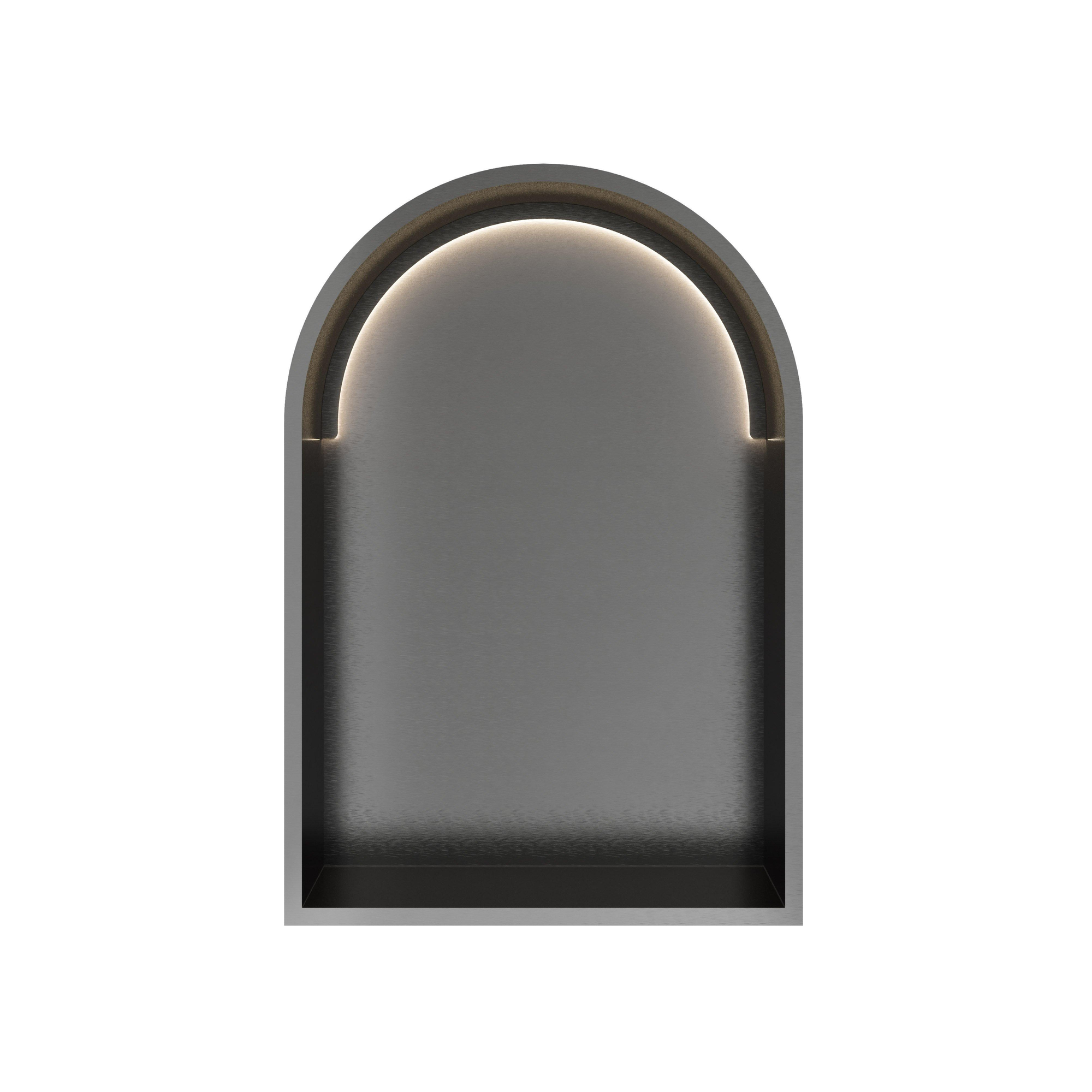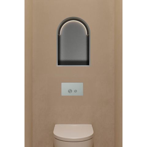De inbouwbox valt direct op door zijn verfijnde ontwerp en hoogwaardige afwerking. Het geborsteld gunmetal PVD zorgt voor een matte, metallic look die zowel tijdloos als trendy is. Deze kleur past moeiteloos bij diverse badkamerstijlen, van industrieel tot modern en zelfs klassiek. De zachte boogvorm geeft een speels en elegant accent, waardoor de nis niet alleen functioneel is, maar ook een echte eyecatcher wordt. Zo voeg je een subtiel maar krachtig designelement toe dat je badkamer een luxe uitstraling geeft.