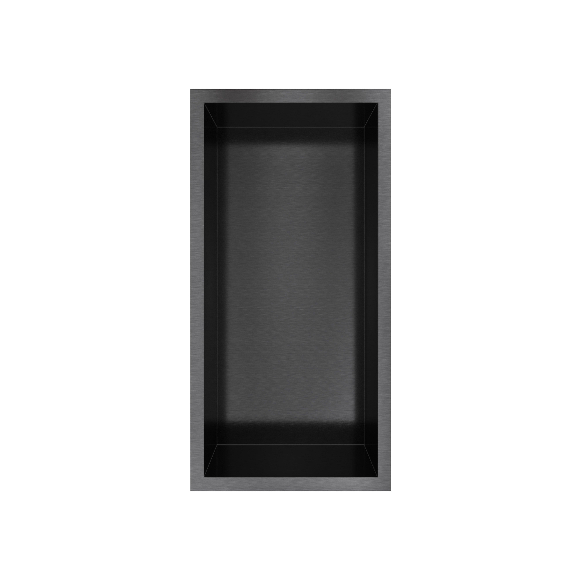 Een inbouwnis is een subtiele maar onmisbare toevoeging aan jouw badkamer, die ruimte en stijl op een slimme manier combineert. Deze compacte nis biedt een praktische plek om je favoriete verzorgingsproducten netjes en binnen handbereik te bewaren, zonder dat het ten koste gaat van de uitstraling van je badkamer. Dankzij de strakke afmetingen past hij moeiteloos in vrijwel elke wand, waardoor je een opgeruimd en rustig geheel creëert. De geborsteld zwarte afwerking geeft een moderne, luxe touch die moeiteloos aansluit bij diverse badkamerstijlen. Zo transformeer je jouw badkamer in een plek waar functionaliteit en design samenkomen, en geniet je dagelijks van een georganiseerde en stijlvolle omgeving.