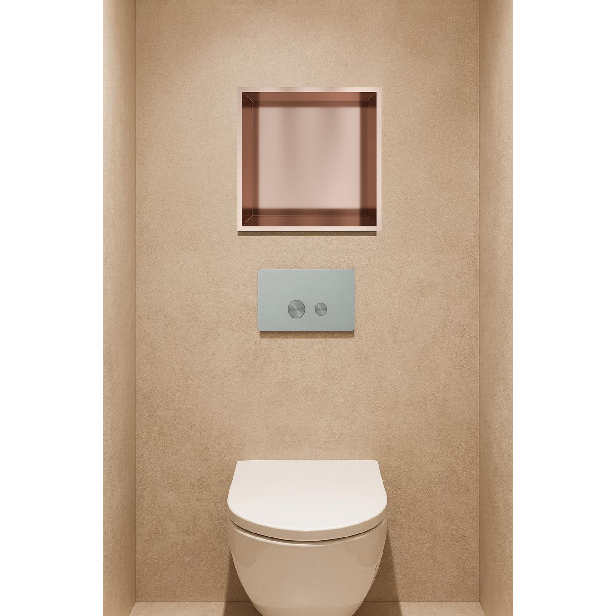 De geborsteld koperen PVD-afwerking geeft deze inbouwbox een unieke, warme glans die je badkamer direct een luxe uitstraling geeft. Dit materiaal is niet alleen prachtig om te zien, maar ook bijzonder duurzaam. De subtiele koperkleur past perfect bij zowel moderne als klassieke badkamers en voegt een verfijnde touch toe zonder te overheersen. Door de strakke, vierkante vorm oogt het geheel minimalistisch en tijdloos. Zo creëer je een badkamer die niet alleen functioneel is, maar ook echt uitnodigt om te ontspannen en te genieten.