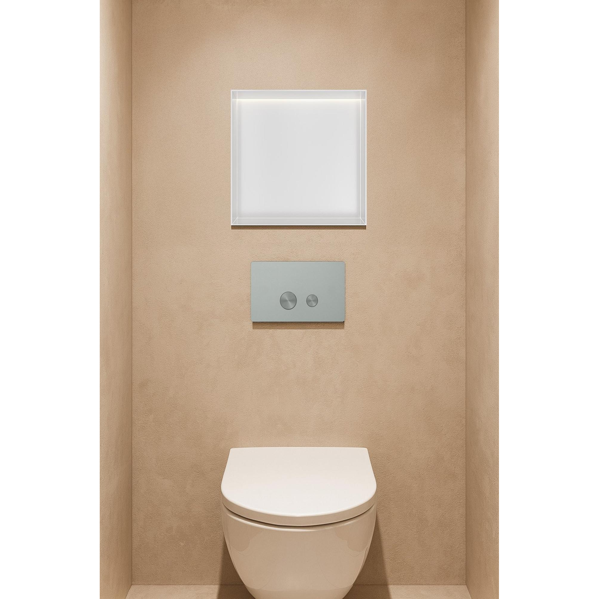 Met deze inbouwnis voeg je moeiteloos een verfijnde en praktische touch toe aan jouw badkamer. Het strakke, frameloze ontwerp in mat wit zorgt voor een moderne en rustige uitstraling die perfect past in elke stijl. Dankzij de geïntegreerde LED-verlichting geniet je van een subtiele, sfeervolle gloed die de ruimte extra warmte en karakter geeft. De compacte afmetingen van 30x30x10 cm maken het mogelijk om deze nis vrijwel overal in de badkamerwand te plaatsen, zonder dat het ruimte inneemt. Zo creëer je extra opbergruimte voor al je badkameraccessoires, terwijl de naadloze, volledig gelaste constructie garant staat voor een waterdichte en duurzame afwerking. Dit maakt het een ideale oplossing voor vochtige plekken zoals de douche, het toilet of bij de wastafel. Met deze inbouwnis geef je jouw badkamer niet alleen een stijlvolle upgrade, maar ook een functionele boost waar je elke dag plezier van hebt.