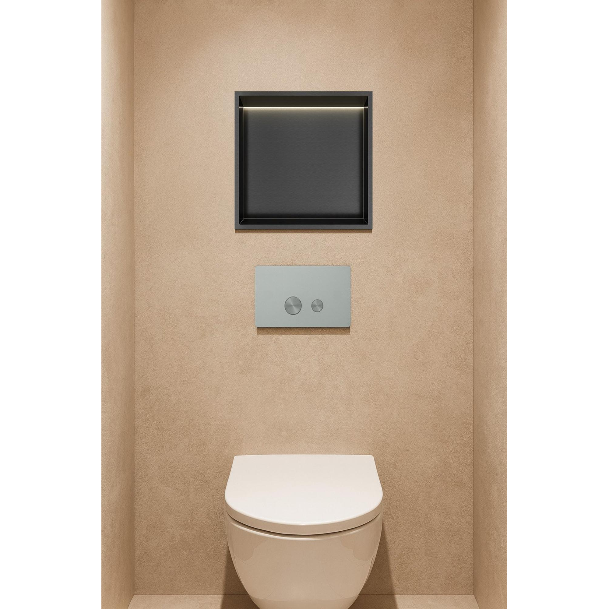Een inbouwnis met geïntegreerde LED-verlichting brengt direct sfeer en functionaliteit in je badkamer. Deze compacte nis van 30x30x10 cm is perfect om kleine badkameraccessoires stijlvol en overzichtelijk op te bergen. Dankzij de subtiele LED-verlichting met IP44-classificatie geniet je van een zachte, sfeervolle gloed die je badkamer een warme uitstraling geeft, zonder dat het licht verblindt. De geborsteld zwarte PVD-afwerking zorgt voor een moderne en luxe uitstraling die moeiteloos aansluit bij diverse badkamerstijlen. Zo transformeer je een eenvoudige wand in een elegant pronkstuk waar je elke dag plezier aan beleeft.