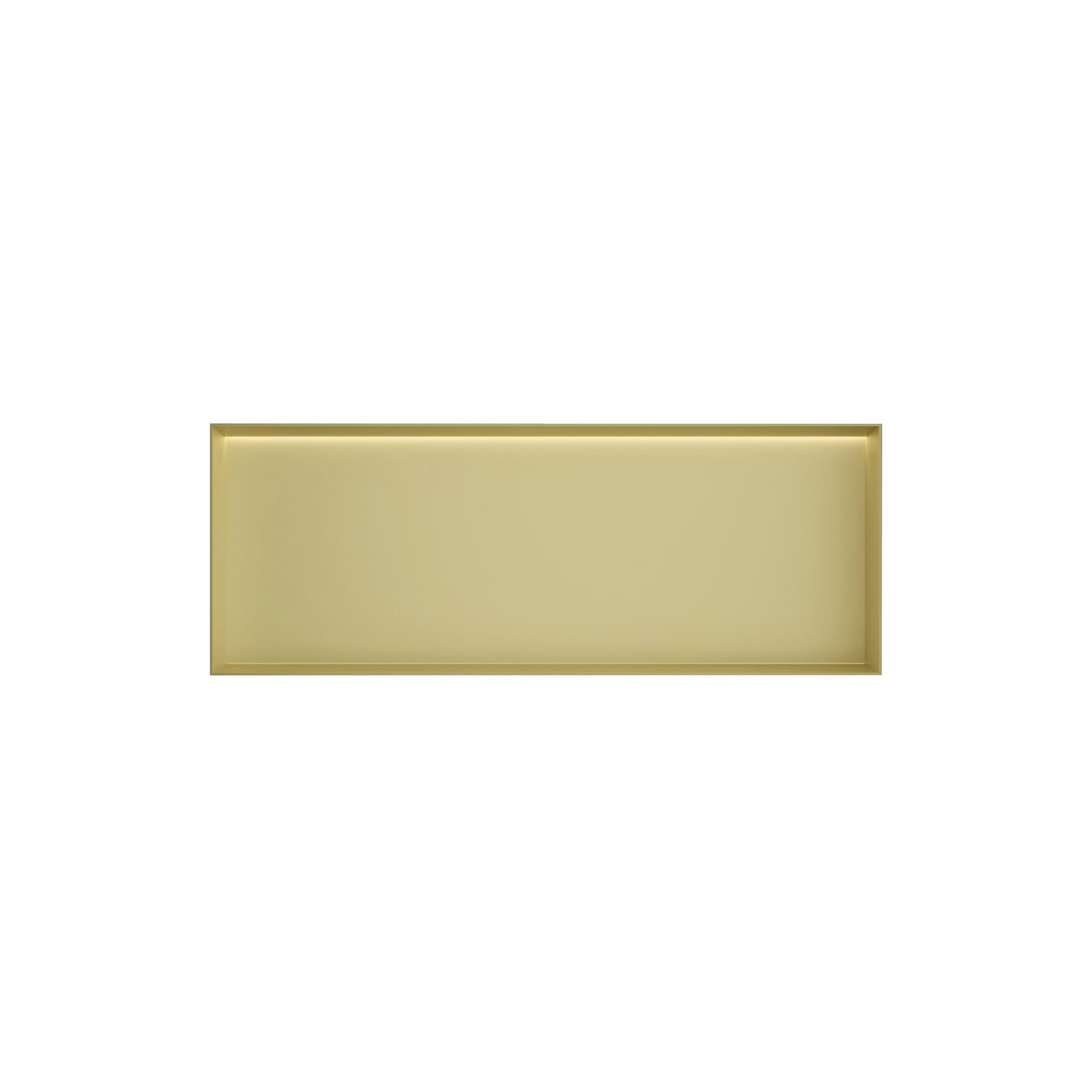 Deze inbouwnis is een toonbeeld van tijdloze elegantie. Het frameloze ontwerp zorgt voor een minimalistische look die rust en ruimte creëert in je badkamer. De geborstelde messing PVD-afwerking geeft een warme, gouden gloed die subtiel schittert zonder te overheersen. Dit maakt het een perfecte aanvulling op zowel moderne als klassieke badkamers. Door de hoogwaardige afwerking behoudt de nis zijn fraaie uitstraling, zelfs bij dagelijks gebruik. Zo geniet je van een stijlvol element dat je badkamer direct een luxe uitstraling geeft.