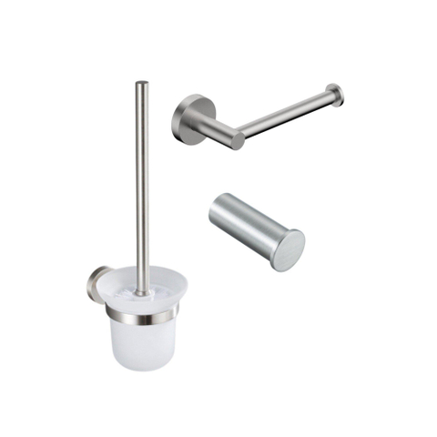 Fortifura Calvi Toiletset 3-delig - toiletrolhouder zonder klep - toiletborstel - handdoekhaak enkel rond - Geborsteld RVS PVD (RVS)