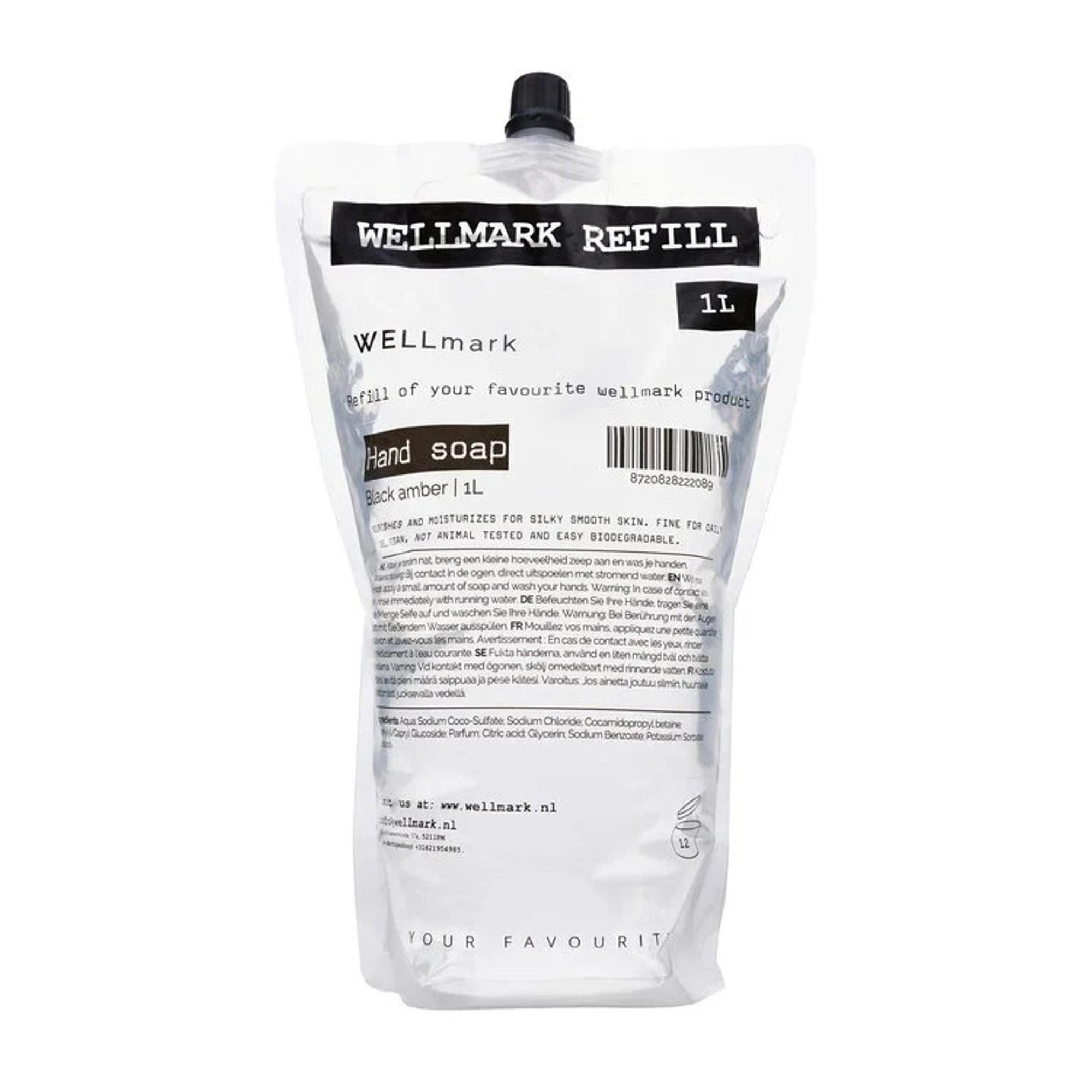 Goed nieuws! De geliefde Wellmark handzeep met de luxe geur van Dark Amber is nu verkrijgbaar in een handige 1 liter navulverpakking. Perfect om jouw favoriete zeep steeds opnieuw bij te vullen en te blijven genieten van de verfrissende geur in de keuken, badkamer of toilet. Een stijlvolle en duurzame keuze voor elk interieur.