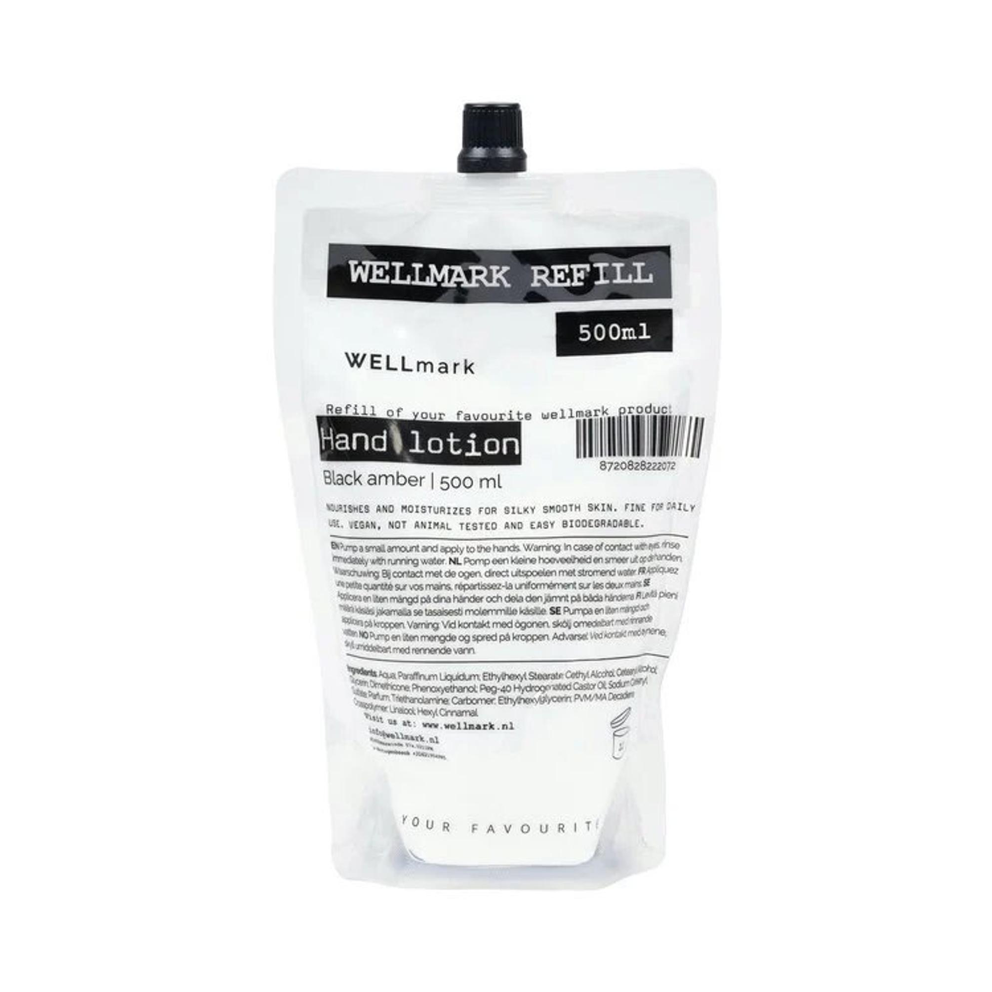 Goed nieuws voor iedereen die fan is van de heerlijke Wellmark hand lotion – Dark Amber! Speciaal vanwege de grote vraag hebben we nu een navulverpakking van maar liefst 500ml toegevoegd aan ons assortiment. Zo kun je jouw mooie glazen pompflacon eenvoudig opnieuw vullen en blijf je langer genieten van de luxe, vegan handcrème met warme ambergeur.