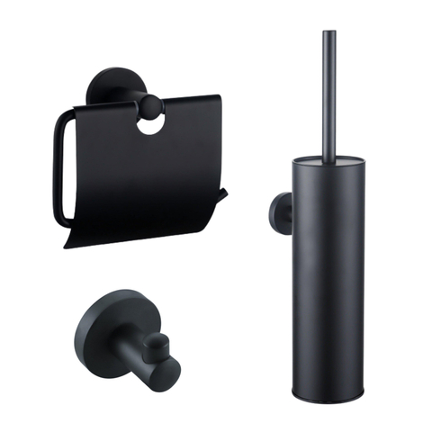 Fortifura Calvi Toiletset - toiletborstelhouder - gesloten - handdoekhaak - toiletrolhouder - met klep - mat zwart