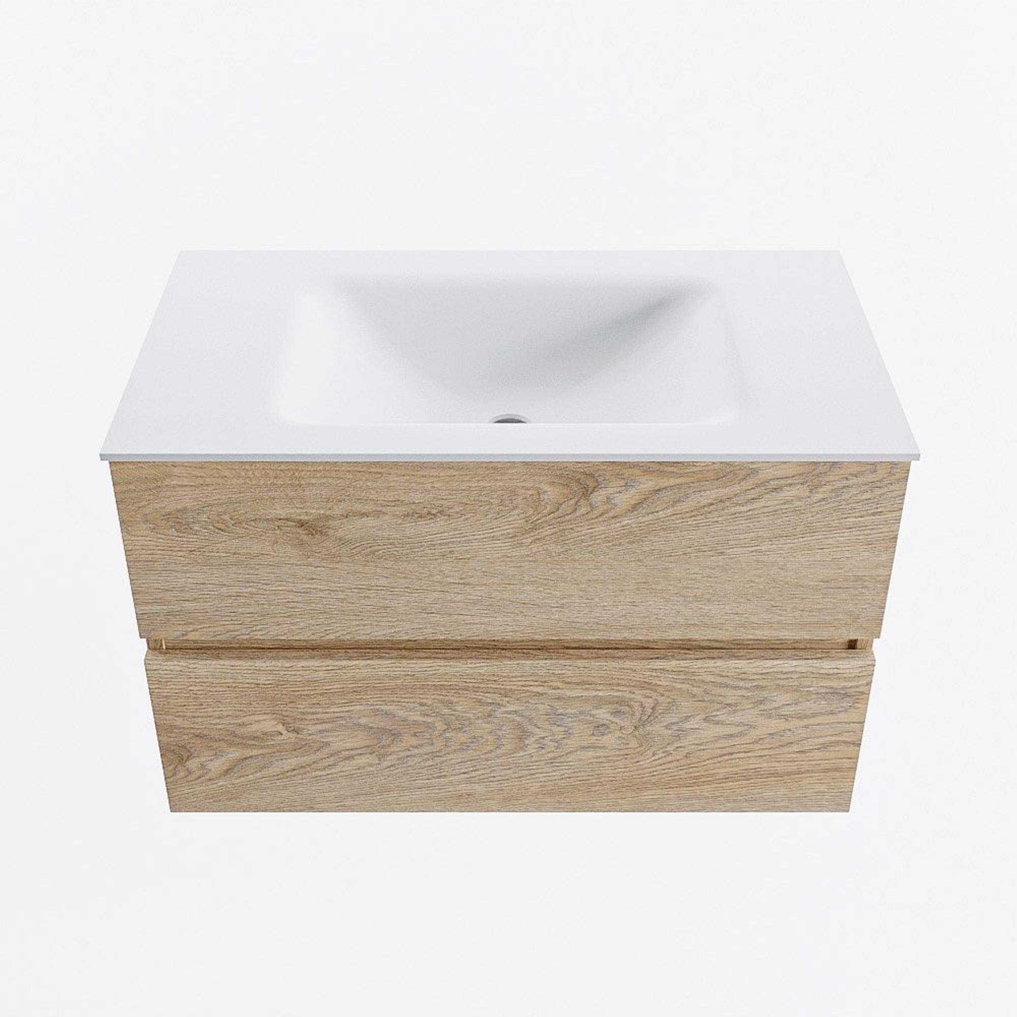 MONDIAZ VICA 80cm badmeubel onderkast Washed Oak 2 lades. Wastafel CLOUD midden zonder kraangat, kleur Talc.