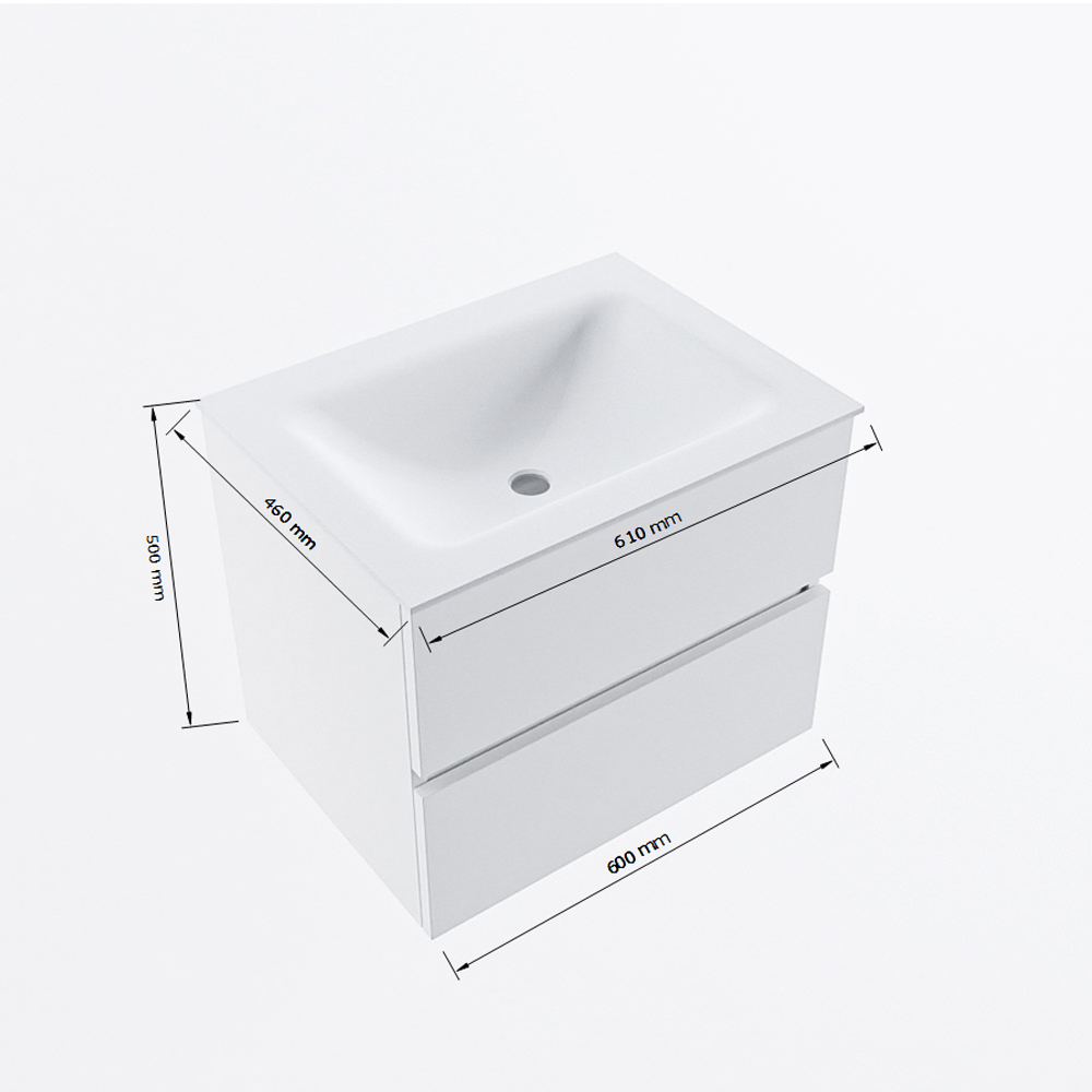 MONDIAZ VICA 60cm badmeubel onderkast Talc 2 lades. Wastafel CLOUD midden 1 kraangat, kleur Talc.
