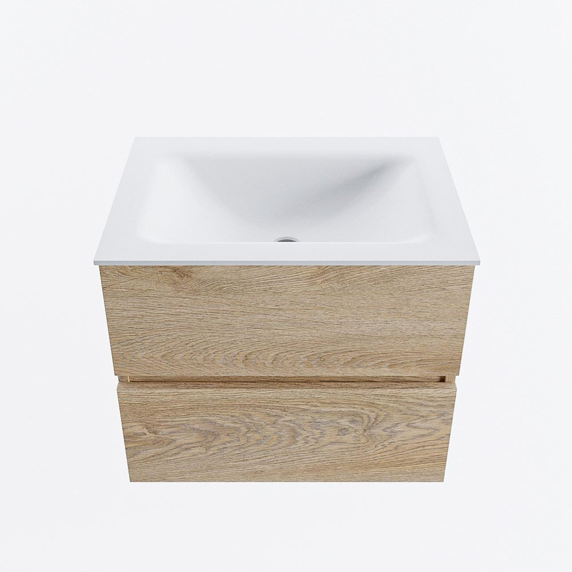 MONDIAZ VICA 60cm badmeubel onderkast Washed Oak 2 lades. Wastafel CLOUD midden 1 kraangat, kleur Talc.