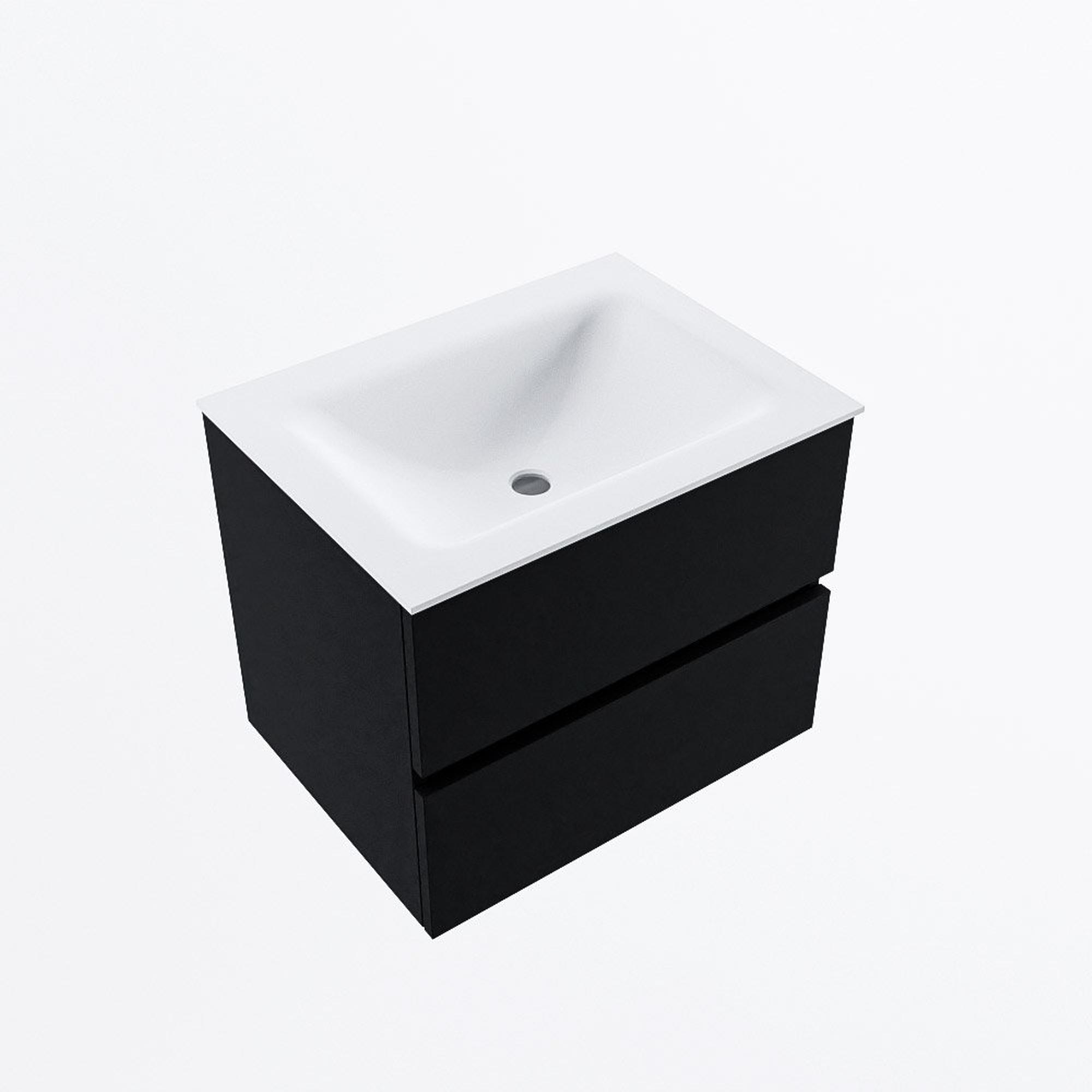 MONDIAZ VICA 60cm badmeubel onderkast Urban 2 lades. Wastafel CLOUD midden 1 kraangat, kleur Talc.
