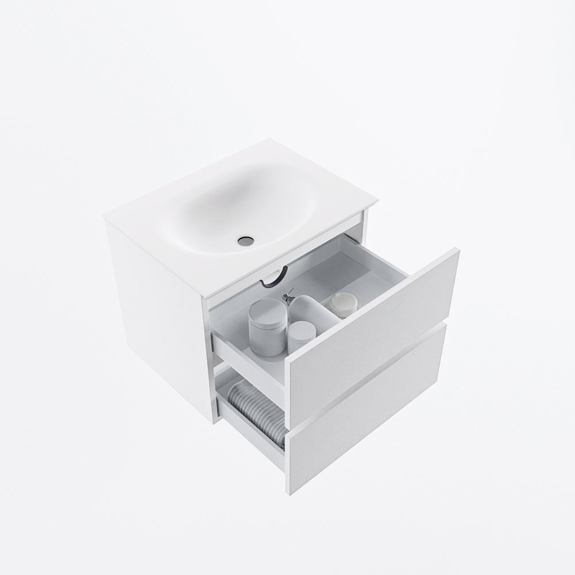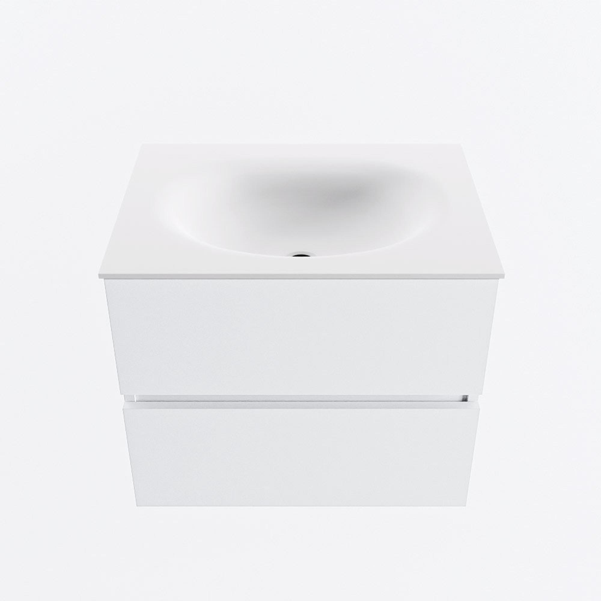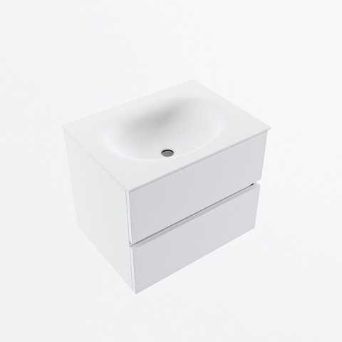 MONDIAZ VICA 60cm badmeubel onderkast Talc 2 lades. Wastafel MOON midden zonder kraangat, kleur Talc.