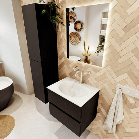 MONDIAZ VICA 60cm badmeubel onderkast Urban 2 lades. Wastafel MOON midden 1 kraangat, kleur Talc.