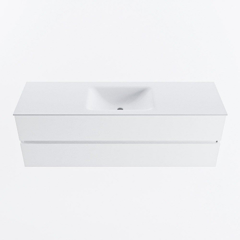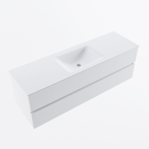 MONDIAZ VICA 150cm badmeubel onderkast Talc 2 lades. Wastafel CLOUD midden zonder kraangat, kleur Talc.