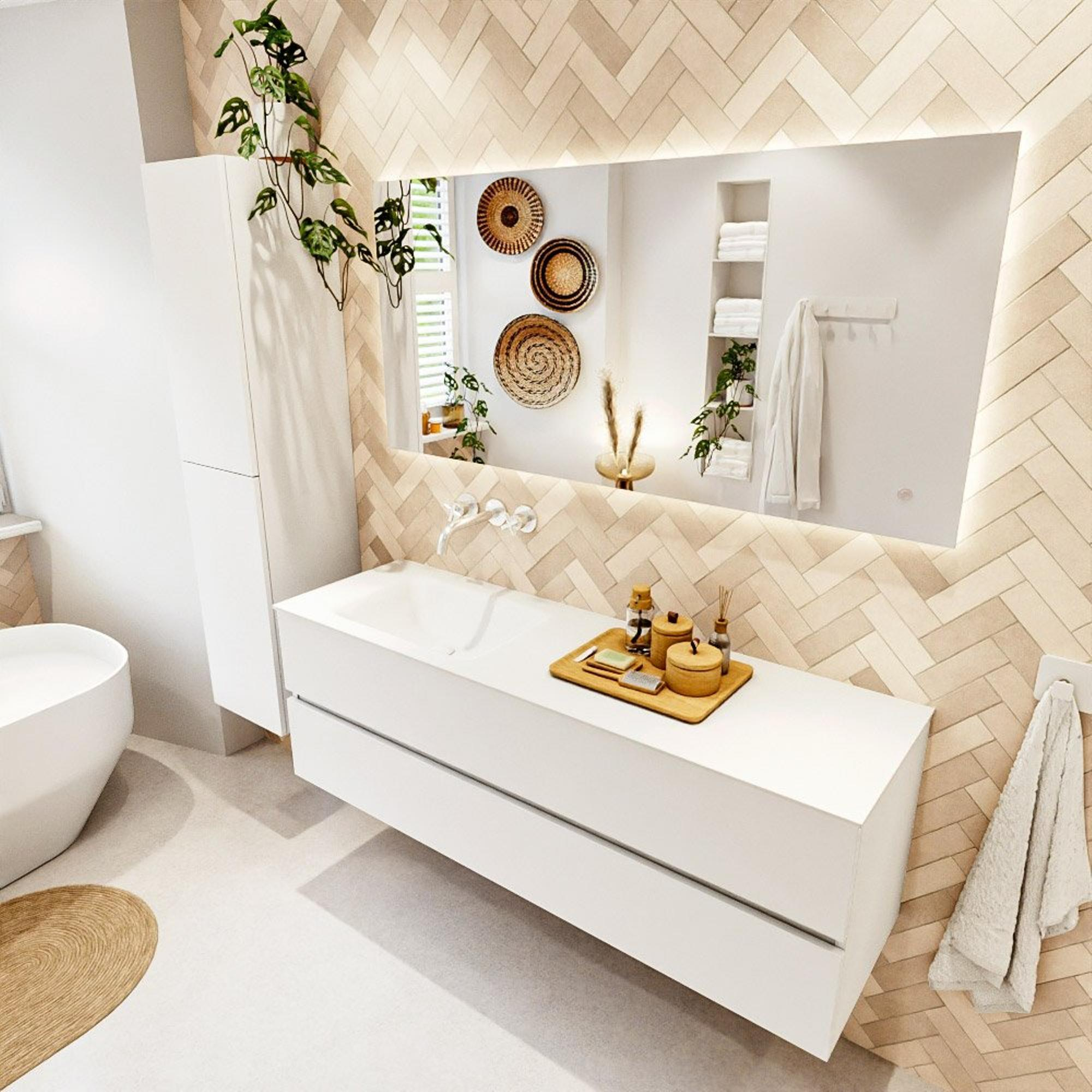 MONDIAZ VICA 150cm badmeubel onderkast Talc 2 lades. Wastafel CLOUD links zonder kraangat, kleur Talc.
