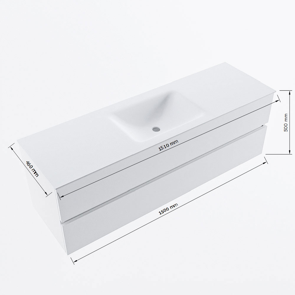 MONDIAZ VICA 150cm badmeubel onderkast Washed Oak 2 lades. Wastafel CLOUD midden 1 kraangat, kleur Talc.