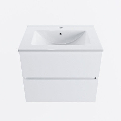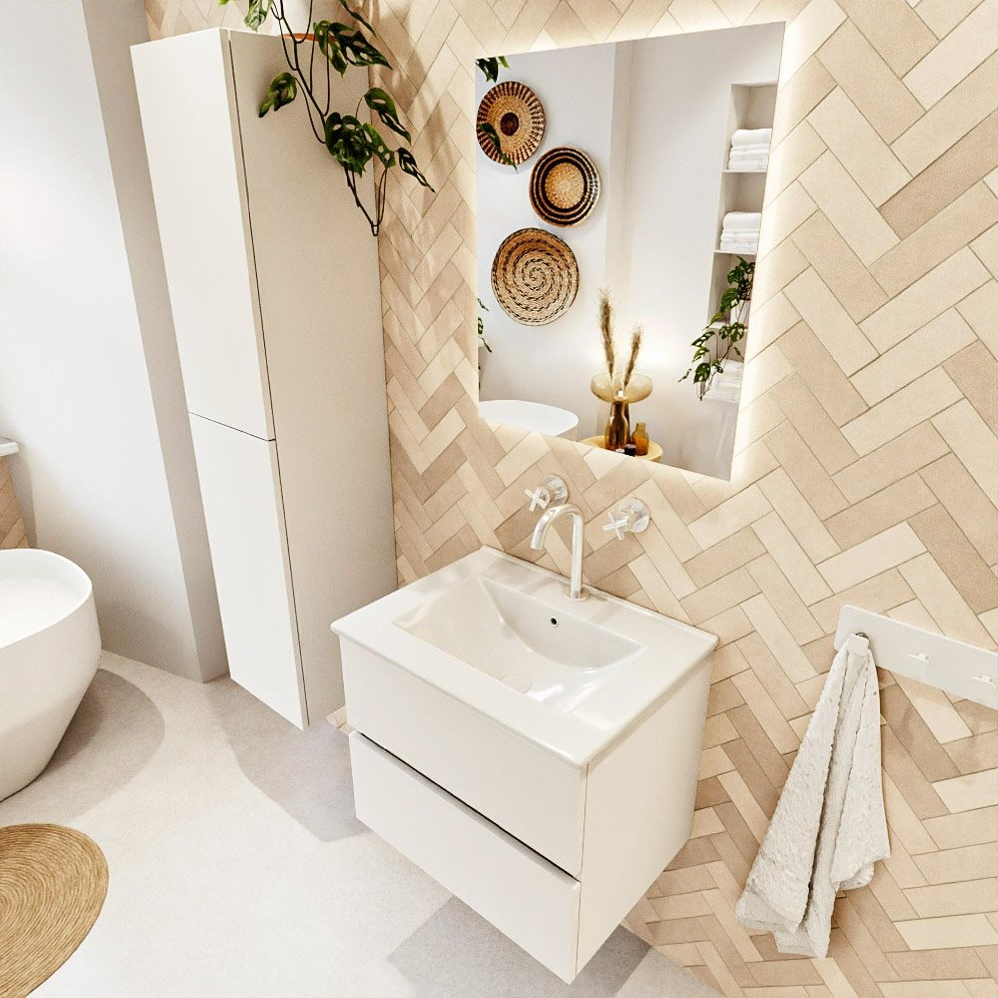 MONDIAZ VICA 60cm badmeubel onderkast Talc 2 lades. Wastafel DENIA midden 1 kraangat, kleur Glanzend Wit.