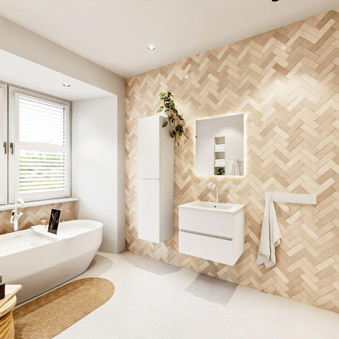 De MONDIAZ VICA badmeubelset straalt een tijdloze elegantie uit die moeiteloos past bij verschillende badkamerstijlen. De glanzend witte afwerking geeft een frisse en schone uitstraling, terwijl de strakke lijnen een modern tintje toevoegen aan de ruimte. Het minimalistische ontwerp zorgt voor een rustgevende sfeer in de badkamer, waardoor het een oase van ontspanning wordt.