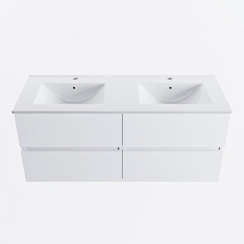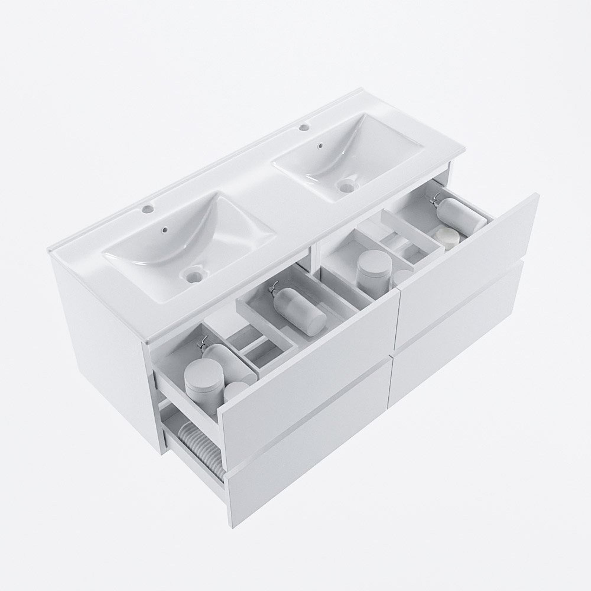 MONDIAZ VICA 120cm badmeubel onderkast Talc 4 lades. Wastafel DENIA dubbel 2 kraangaten, kleur Glanzend Wit.