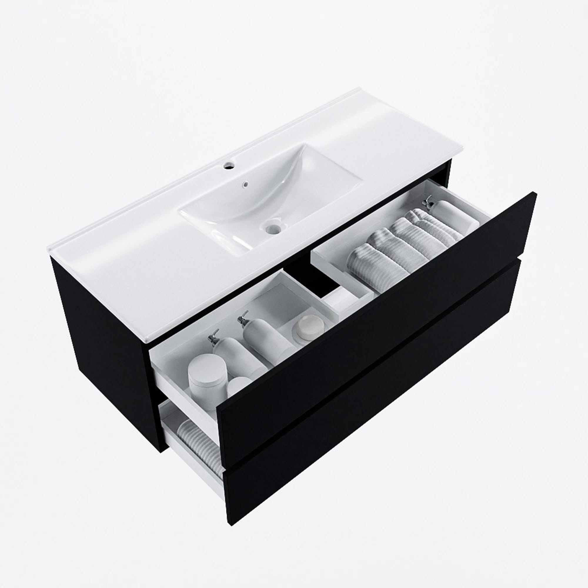 MONDIAZ VICA 120cm badmeubel onderkast Urban 2 lades. Wastafel DENIA midden 1 kraangat, kleur Glanzend Wit.