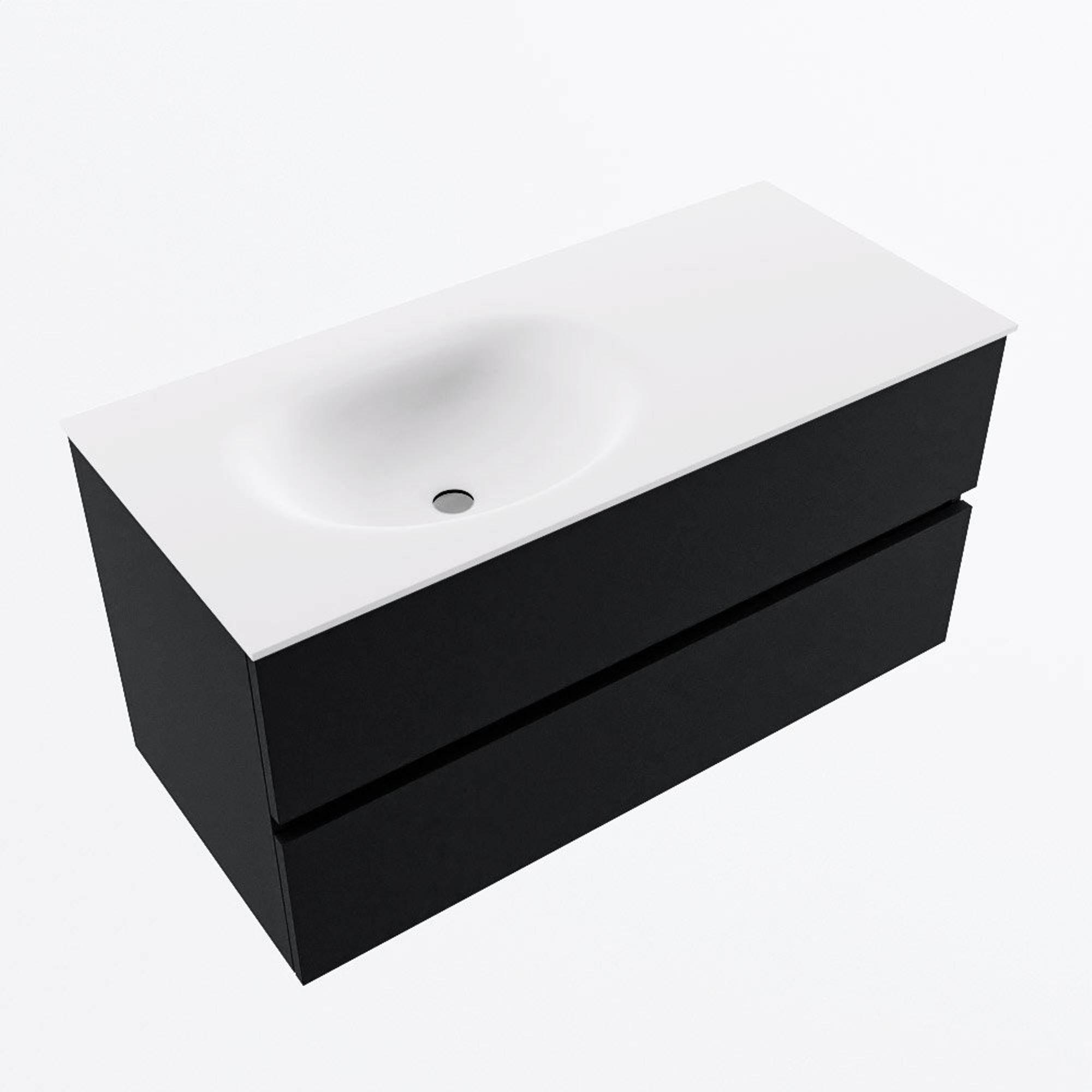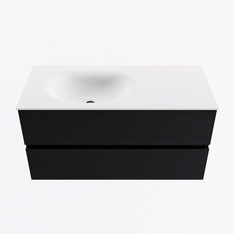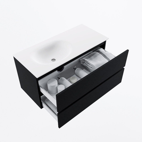 MONDIAZ VICA 100cm badmeubel onderkast Urban 2 lades. Wastafel MOON links zonder kraangat, kleur Talc.