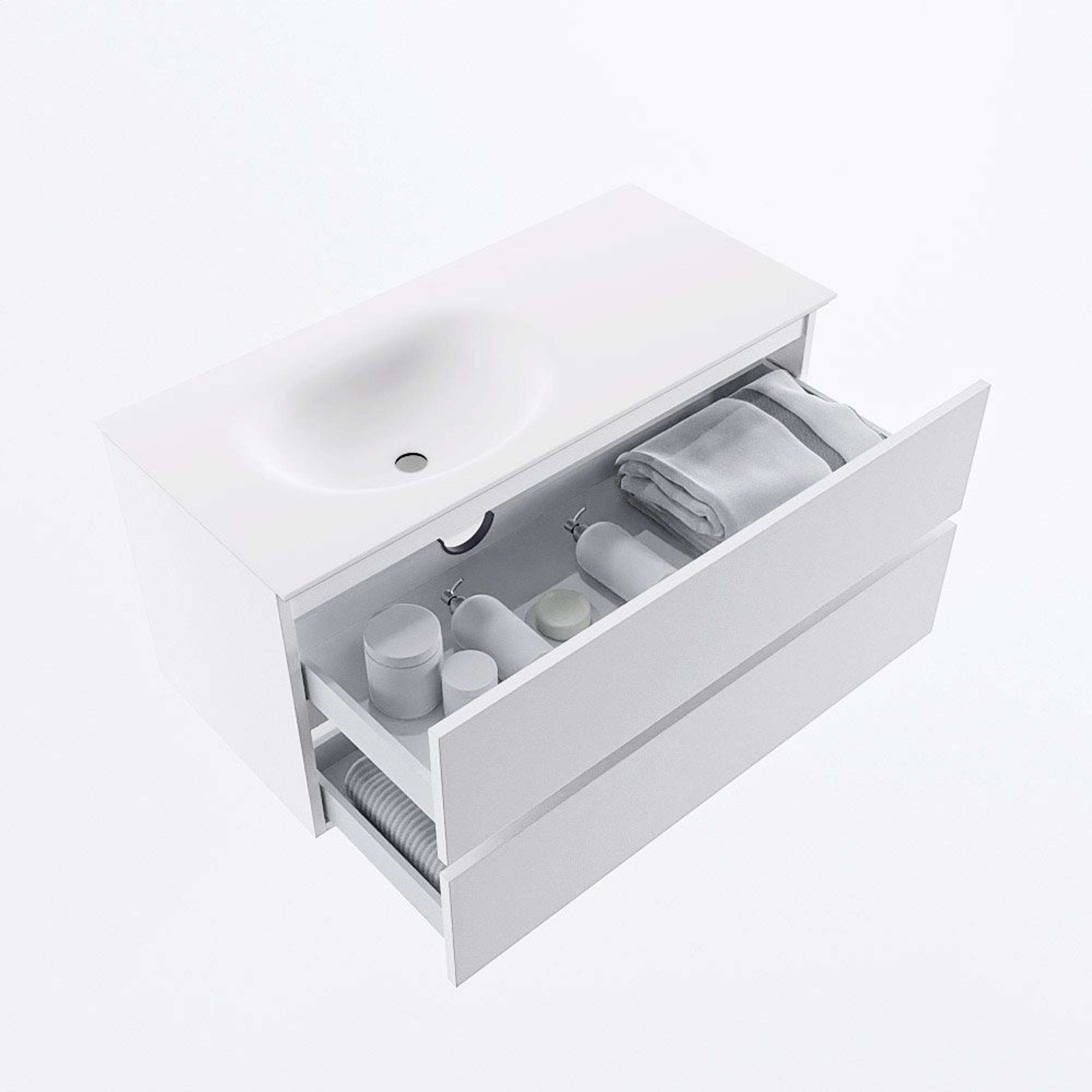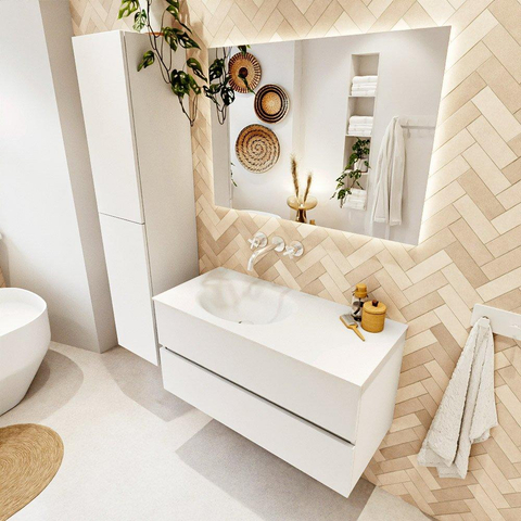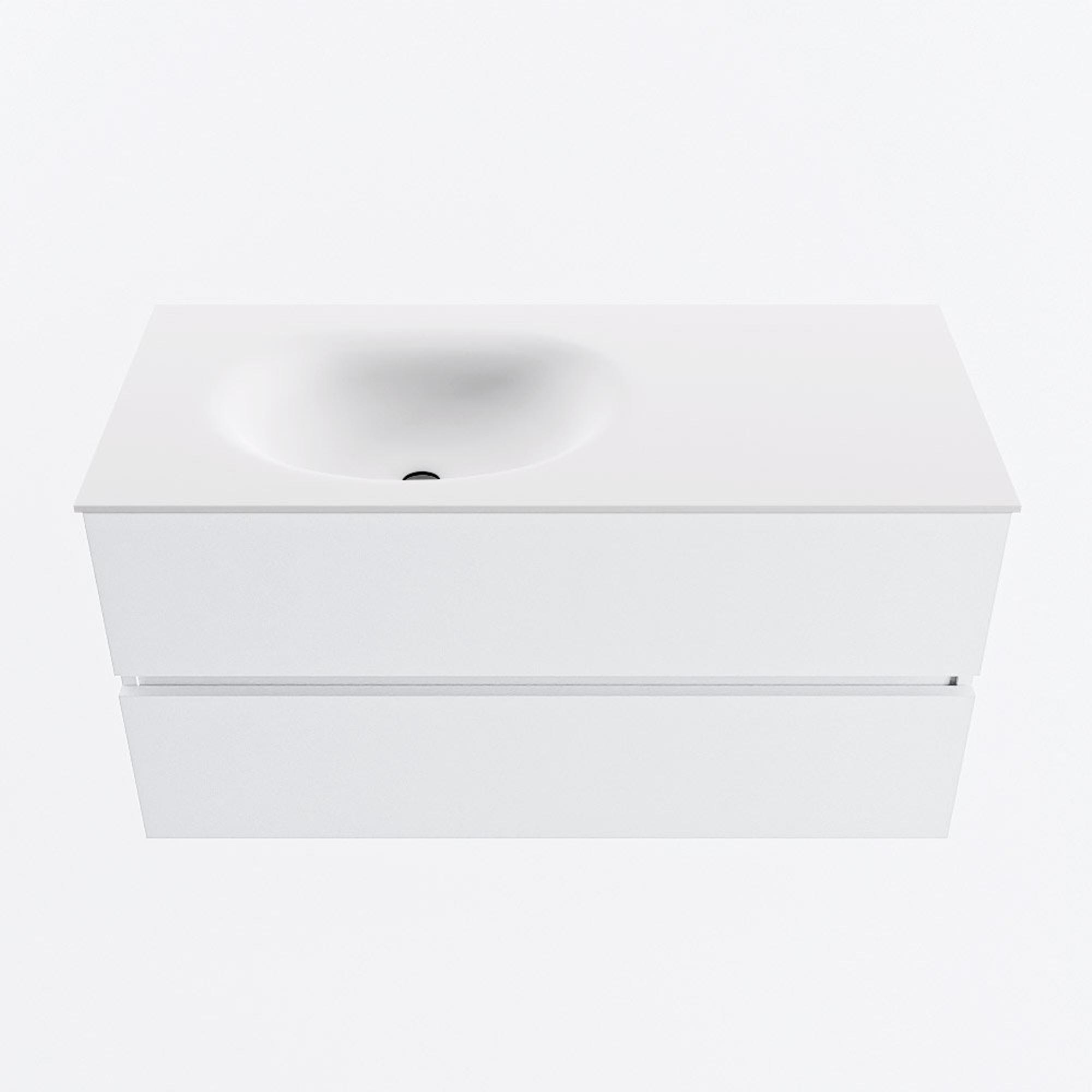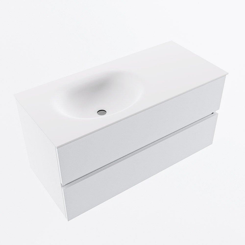 MONDIAZ VICA 100cm badmeubel onderkast Talc 2 lades. Wastafel MOON links zonder kraangat, kleur Talc.