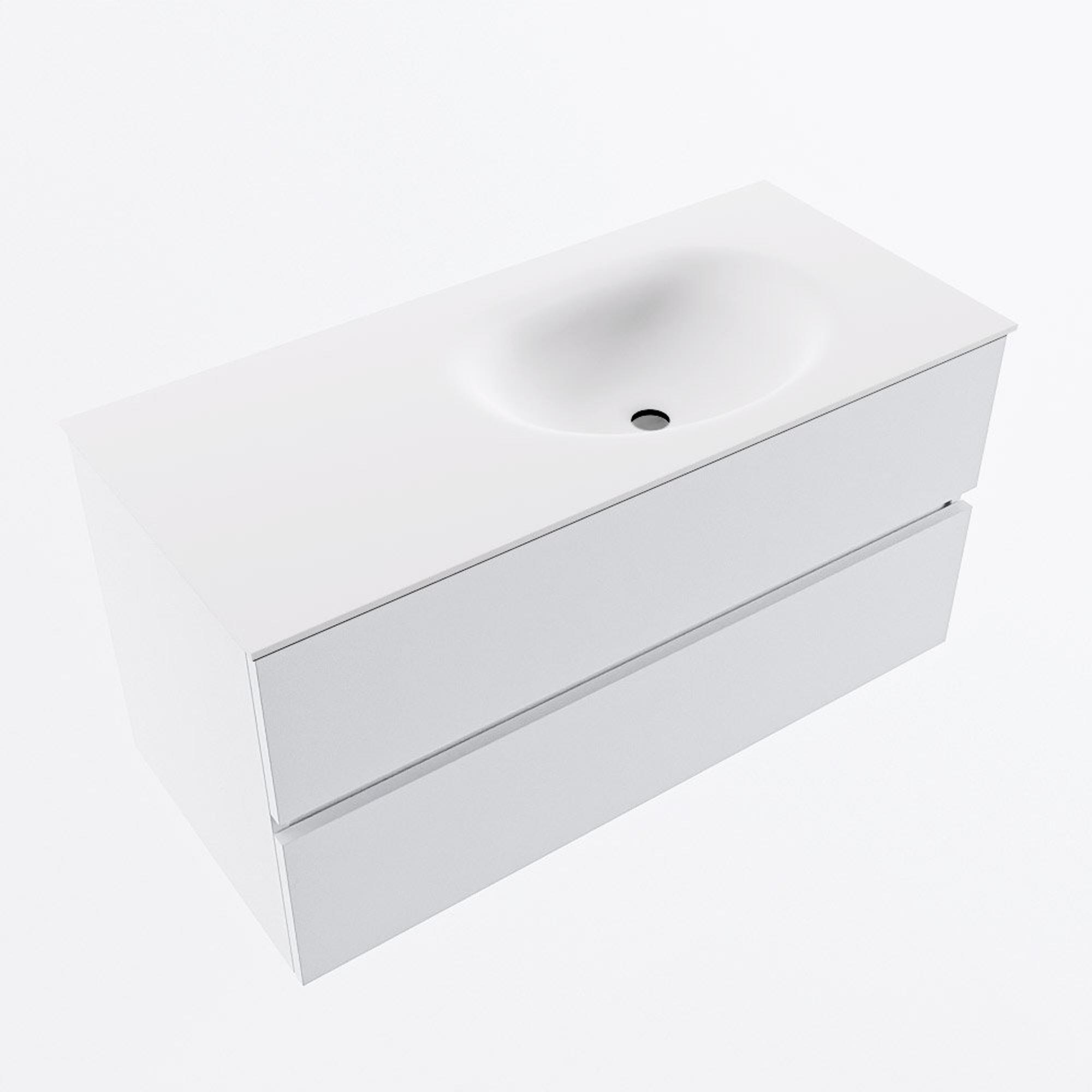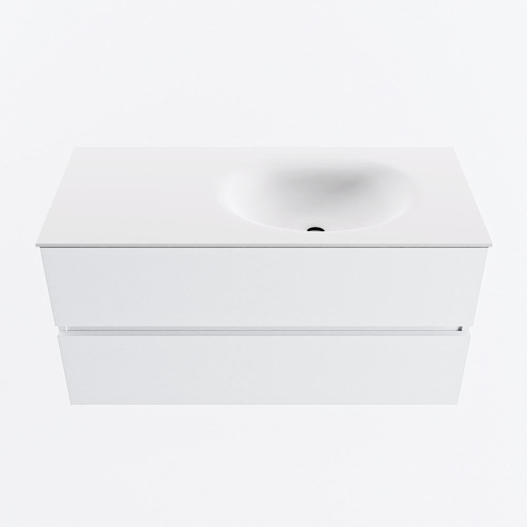 MONDIAZ VICA 100cm badmeubel onderkast Talc 2 lades. Wastafel MOON rechts zonder kraangat, kleur Talc.