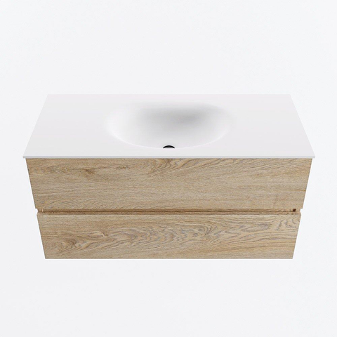 MONDIAZ VICA 100cm badmeubel onderkast Washed Oak 2 lades. Wastafel MOON midden 1 kraangat, kleur Talc.