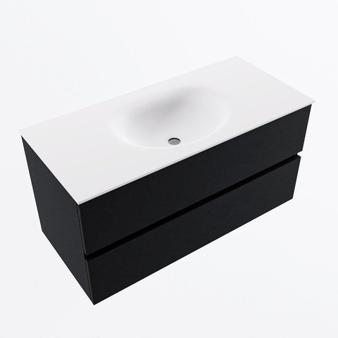 MONDIAZ VICA 100cm badmeubel onderkast Urban 2 lades. Wastafel MOON midden 1 kraangat, kleur Talc.