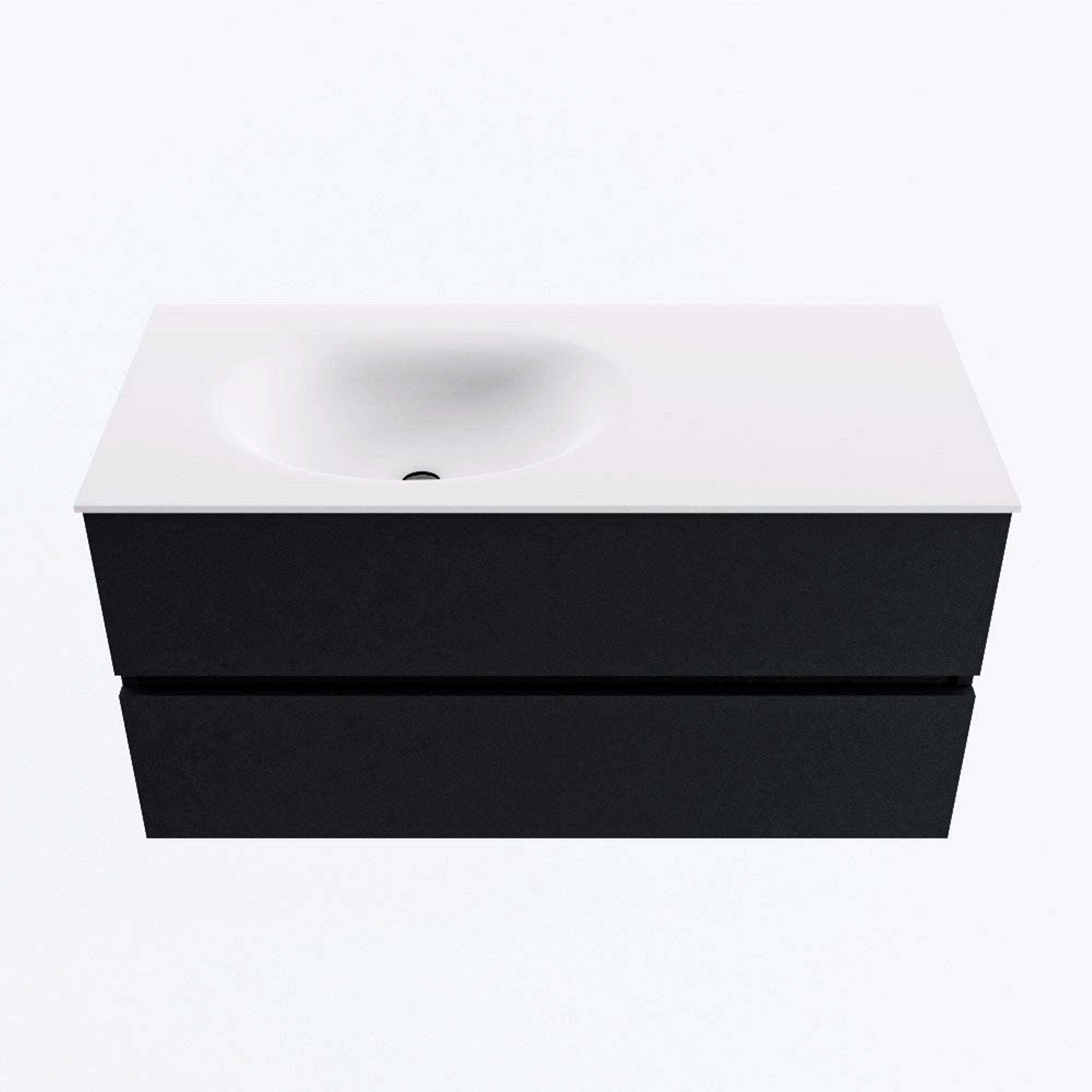MONDIAZ VICA 100cm badmeubel onderkast Urban 2 lades. Wastafel MOON links 1 kraangat, kleur Talc.