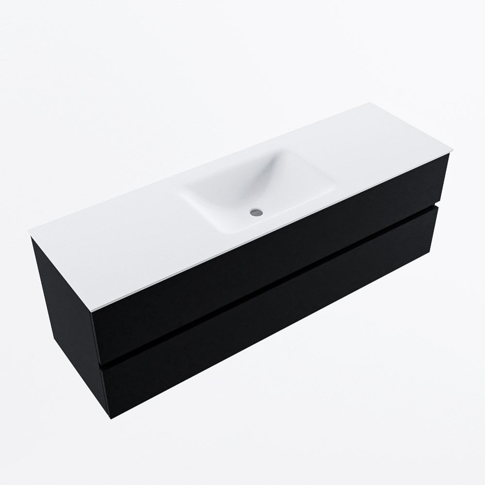 MONDIAZ VICA 150cm badmeubel onderkast Urban 2 lades. Wastafel CLOUD midden 1 kraangat, kleur Talc.