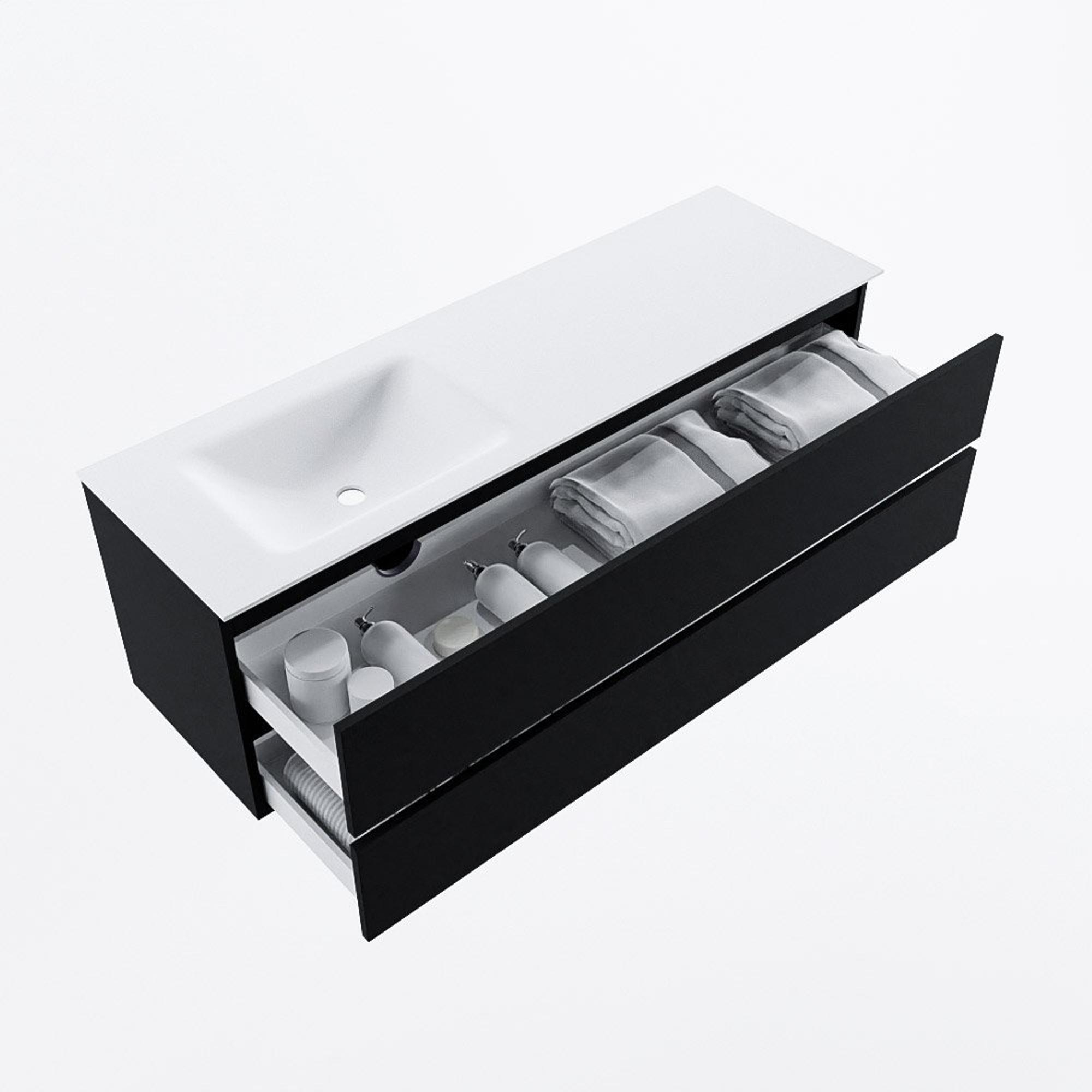 MONDIAZ VICA 150cm badmeubel onderkast Urban 2 lades. Wastafel CLOUD links 1 kraangat, kleur Talc.
