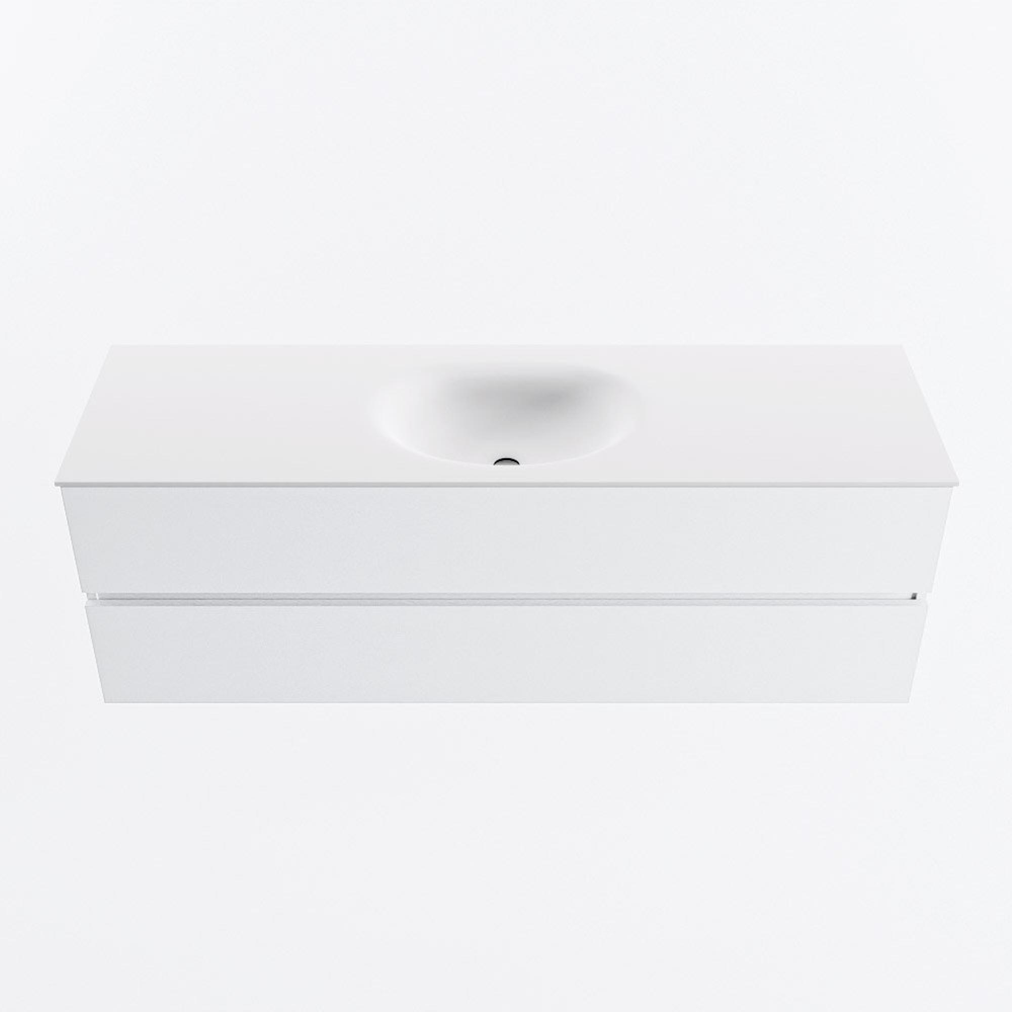 MONDIAZ VICA 150cm badmeubel onderkast Talc 2 lades. Wastafel MOON midden 1 kraangat, kleur Talc.