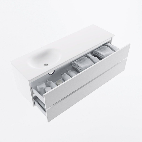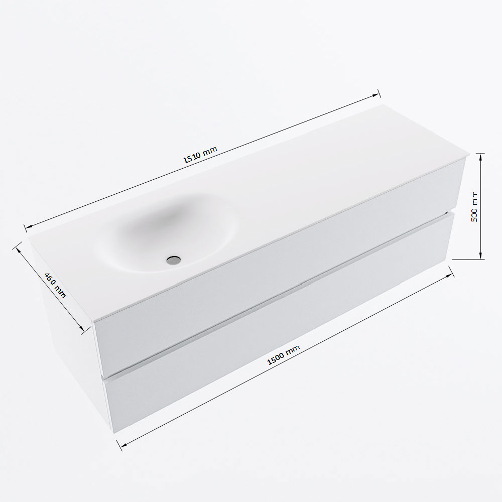 MONDIAZ VICA 150cm badmeubel onderkast Talc 2 lades. Wastafel MOON links 1 kraangat, kleur Talc.