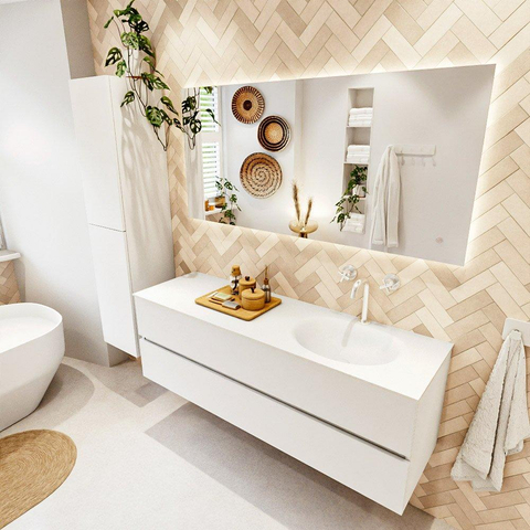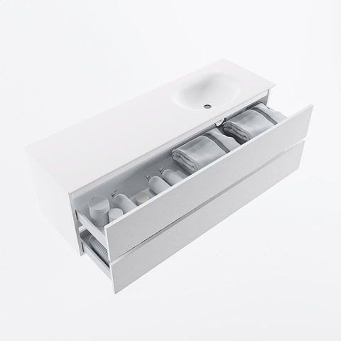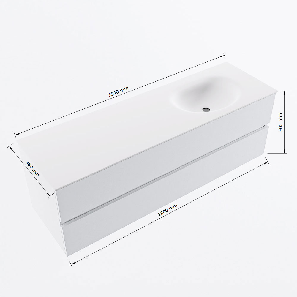 MONDIAZ VICA 150cm badmeubel onderkast Talc 2 lades. Wastafel MOON rechts 1 kraangat, kleur Talc.