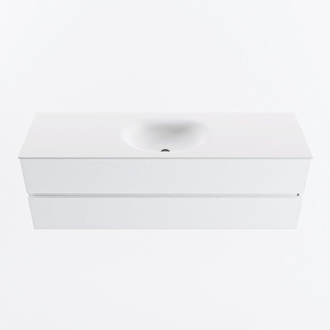 MONDIAZ VICA 150cm badmeubel onderkast Talc 2 lades. Wastafel MOON midden zonder kraangat, kleur Talc.