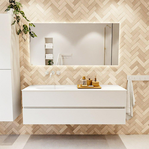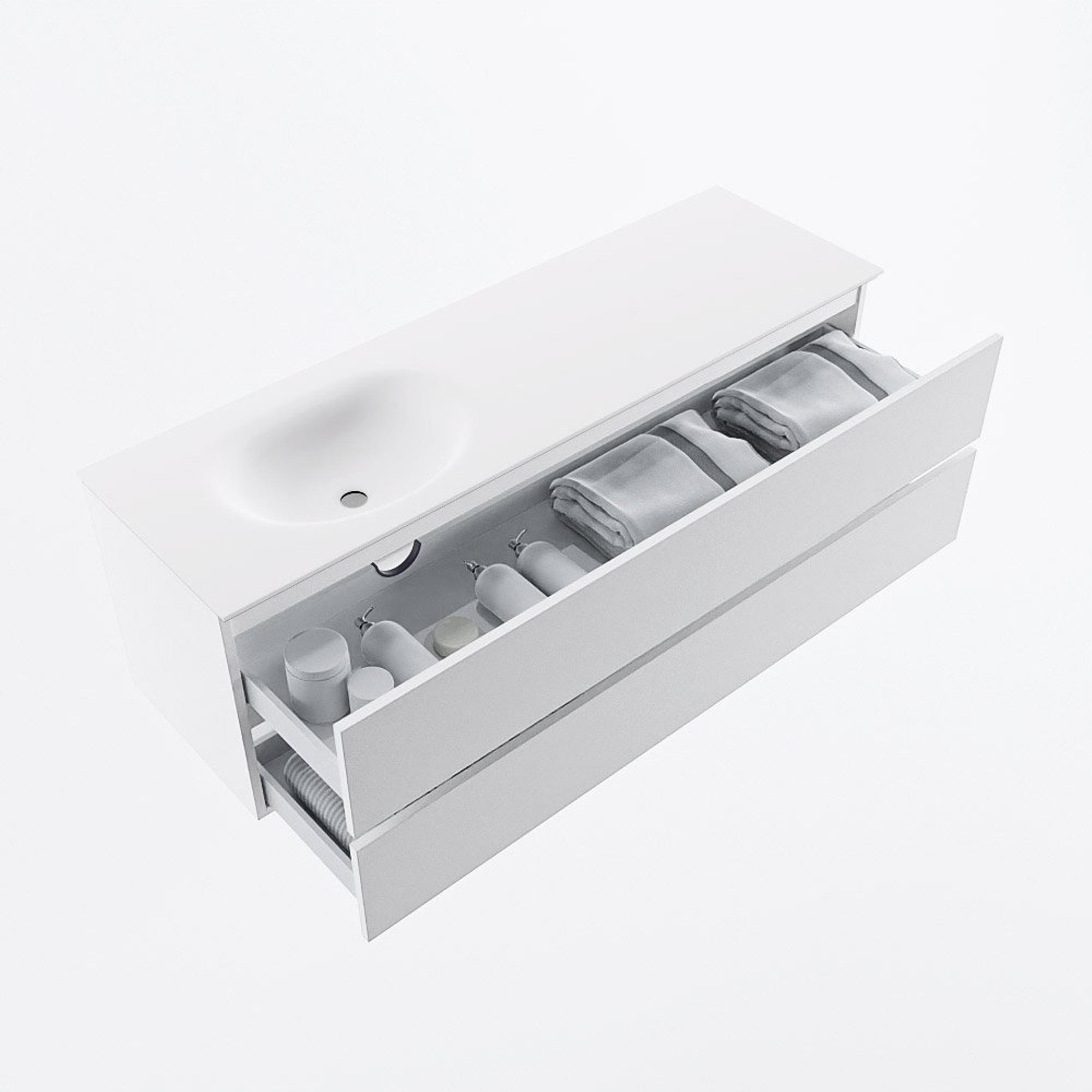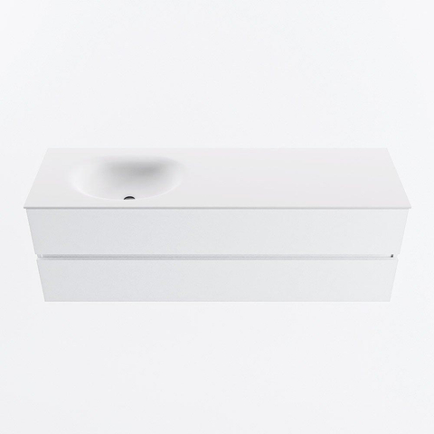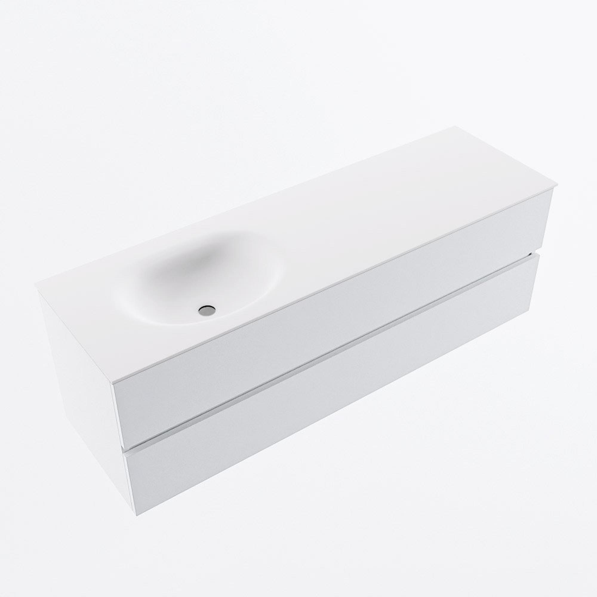 MONDIAZ VICA 150cm badmeubel onderkast Talc 2 lades. Wastafel MOON links zonder kraangat, kleur Talc.