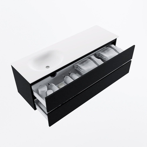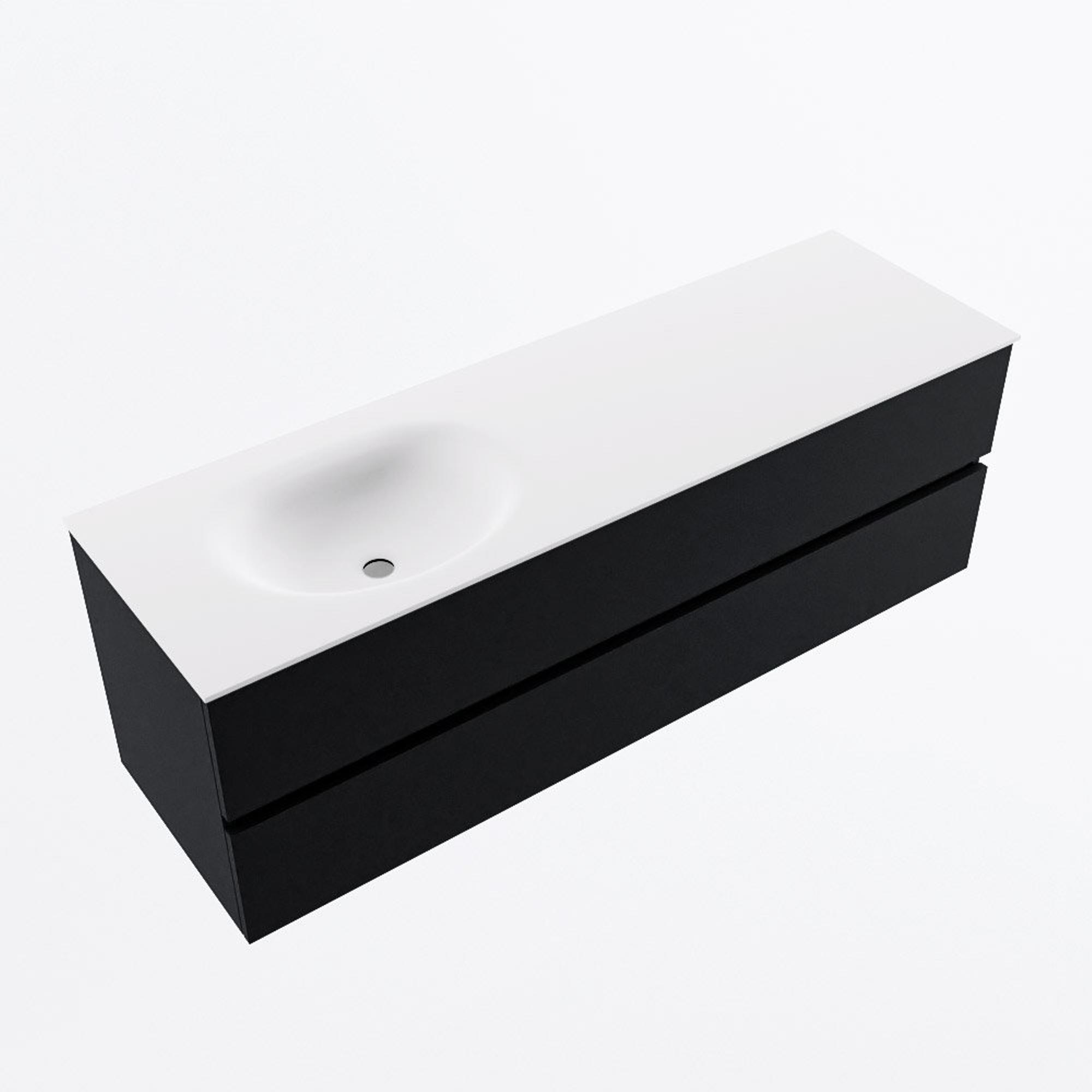 MONDIAZ VICA 150cm badmeubel onderkast Urban 2 lades. Wastafel MOON links zonder kraangat, kleur Talc.